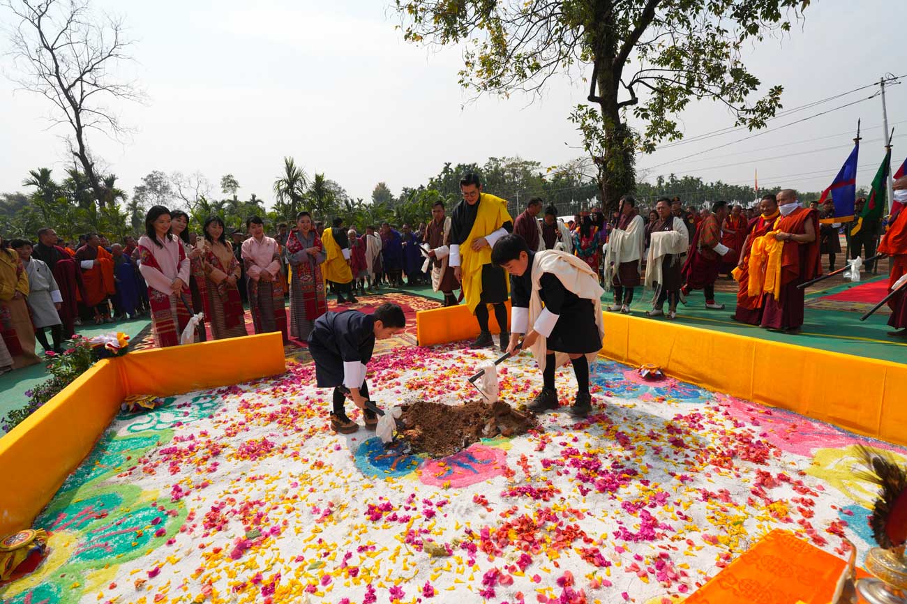 La famille royale a aussi participé à la cérémonie de lancement du chantier d’un autre stupa. Ce chörten sera érigé à une hauteur de 80 mètres, symbolisant les 80 ans de la vie du Bouddha sur terre. Il s’agira du premier chörten construit en plein cœur du centre-ville de Gelephu Mindfulness City. Le roi Jigme Singye, père du roi actuel, et ses quatre épouses accompagnaient la famille royale.