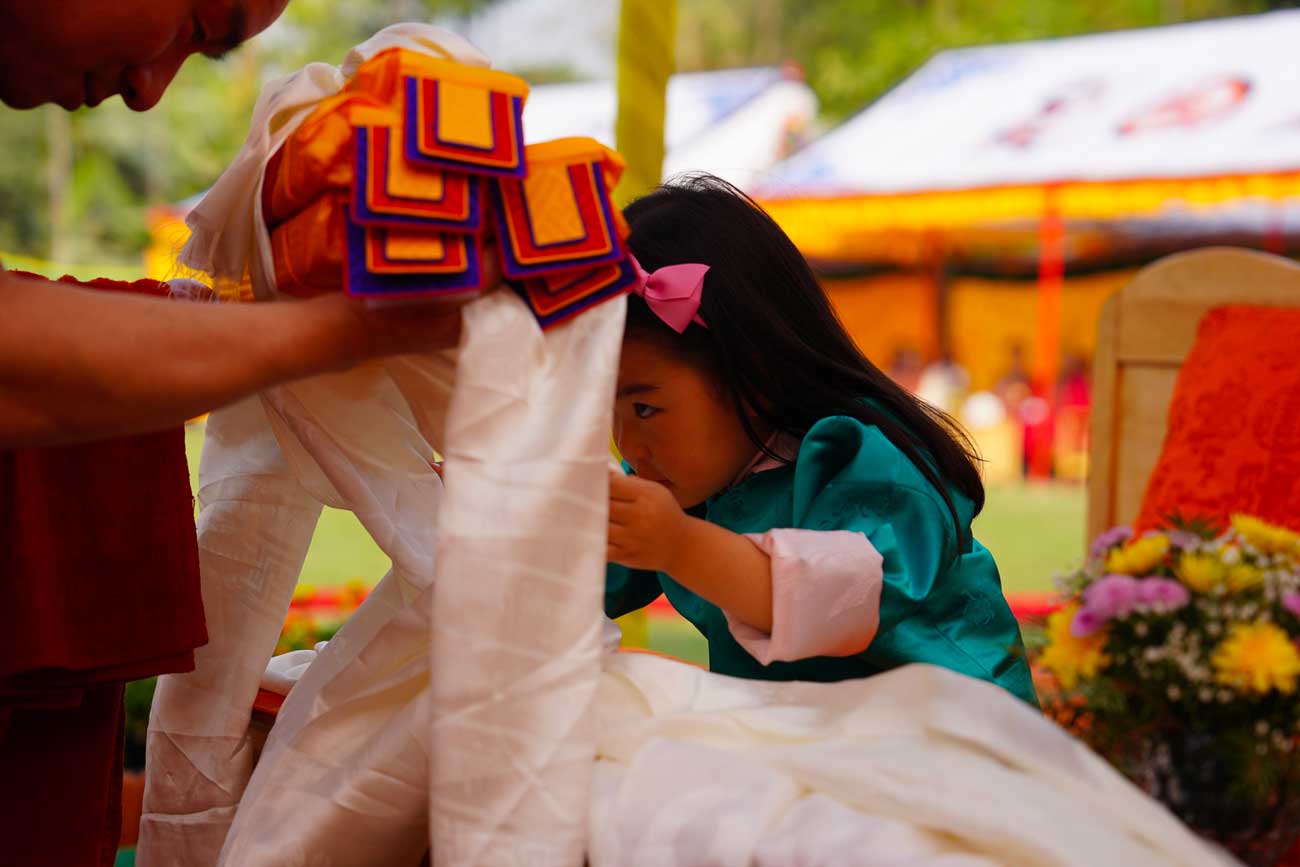 La petite princesse Sonam lors de la cérémonie de consécration du chörten érigé en l’honneur de sa naissance (Photo : Royal Office for Media)