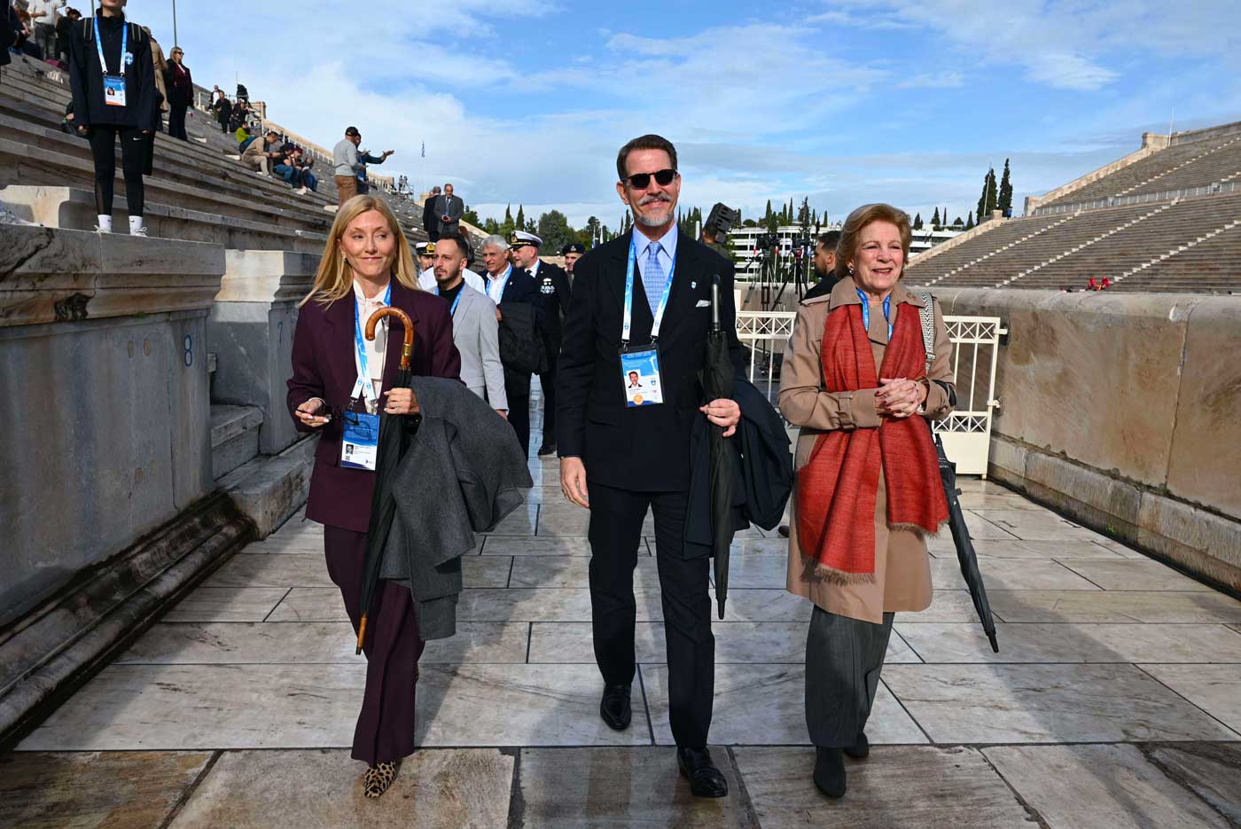 La reine Anne-Marie et le prince héritier Pavlos au Stade panathénaïque