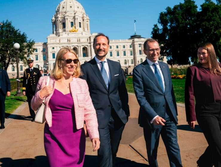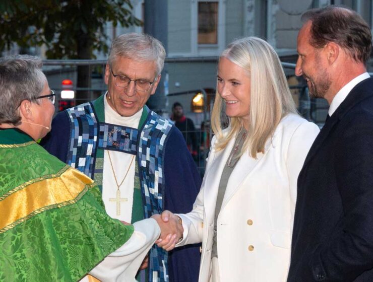 Enfants et belle-fille : le prince héritier Haakon et son épouse la princesse héritière Mette-Marit, la princesse Märtha Louise.