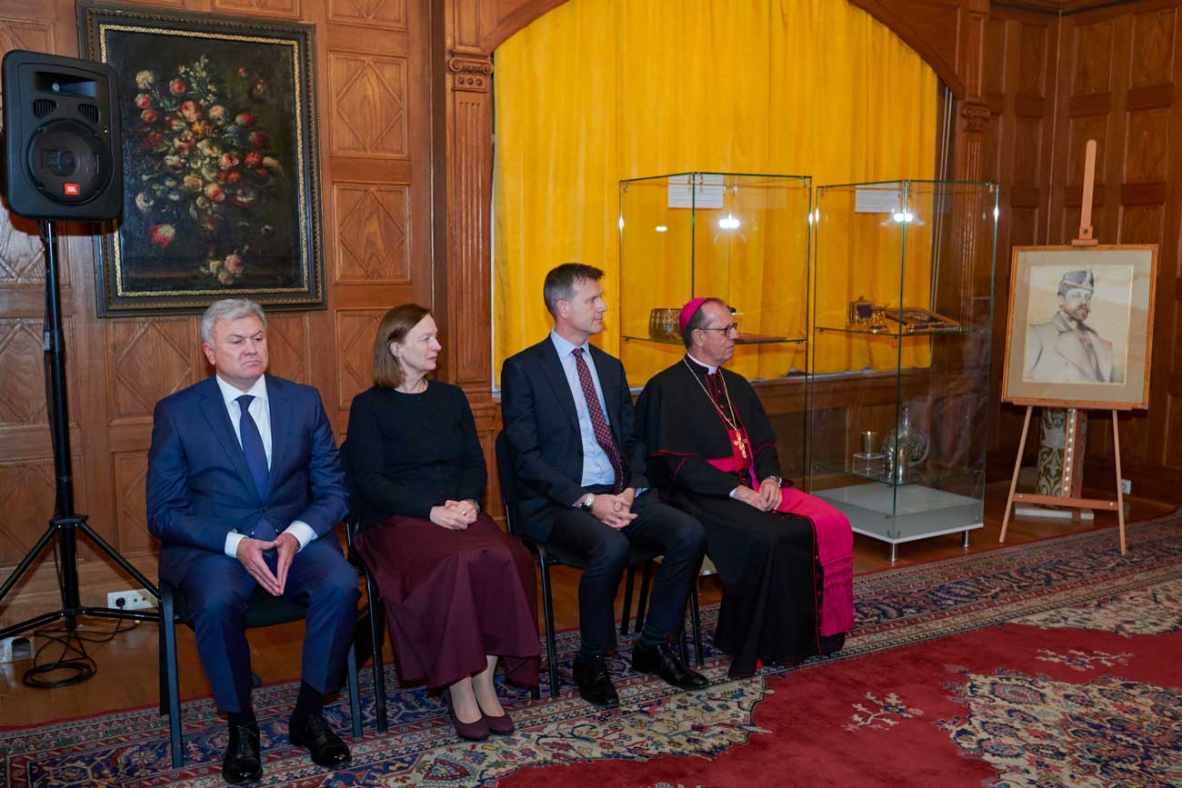 Les noms de Ferdinand et Marie sont gravés à jamais dans l’histoire roumaine comme étant les moteurs de l’unité et de l’identité de la Roumanie moderne. La ministre des Affaires étrangères, Oana Țoiu, et le chef d’état-major des armées, le général Gheorghiță Vlad, ont assisté à l’événement organisé par les descendants des souverains de la Grande Roumanie. Le corps diplomatique était représenté par le doyen des ambassadeurs, le nonce apostolique en poste à Bucarest, l’archevêque Giampiero Gloder. D’autres ambassadeurs étaient présents : l’ambassadrice d’Allemagne, Angela Ganninger, l’ambassadeur du Royaume-Uni, Giles Portman, et l’ambassadeur de Moldavie, Victor Chirilă.