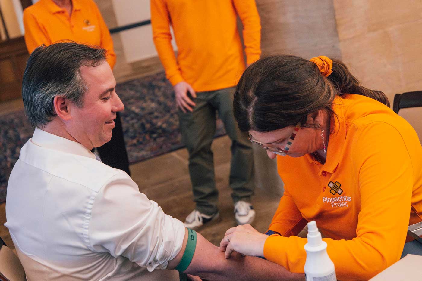 Le grand-duc Guillaume de Luxembourg a accueilli des infirmières et le fondateur du Plooschter Projet. Le grand-duc Guillaume a fait une prise de sang pour s’inscrire dans la liste des donneurs potentiels de cellules souches.