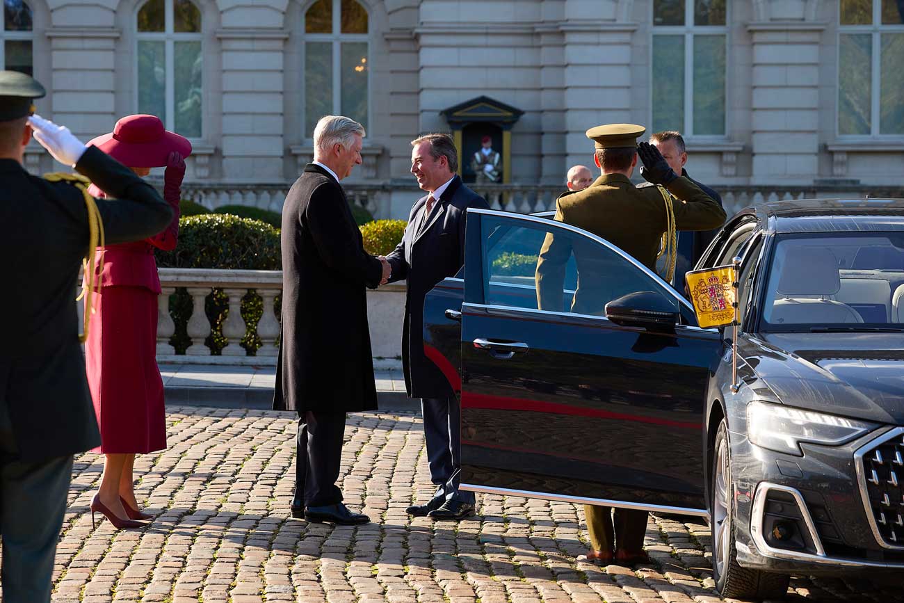 Le roi Philippe avait déroulé le tapis rouge devant le palais royal de Bruxelles pour accueillir son cousin. En avril 2024 le roi Philippe en avait déjà fait de même pour la venue du grand-duc Henri. Juste avant l’abdication du grand-duc Henri, le roi Philippe avait invité son cousin germain en visite d’État en Belgique, rendant la pareille à la visite d’État à laquelle il avait été convié au Luxembourg en 2019. Depuis son accession au trône en 2013, le roi Philippe a entretenu une relation étroite avec le grand-duc Henri et il compte maintenir cette relation avec le grand-duc Guillaume. Pour s’assurer de la pérennité de l’amitié belgo-luxembourgeoise, la princesse Élisabeth, héritière du trône belge, avait même accompagné ses parents au Luxembourg le 3 octobre dernier lors de la journée d’avènement au trône de Guillaume.