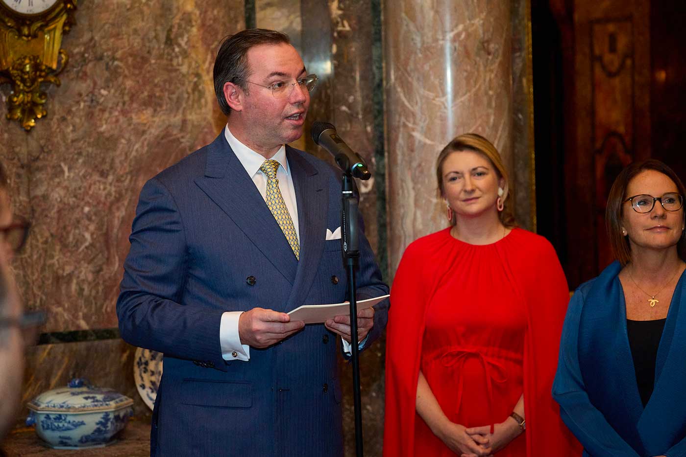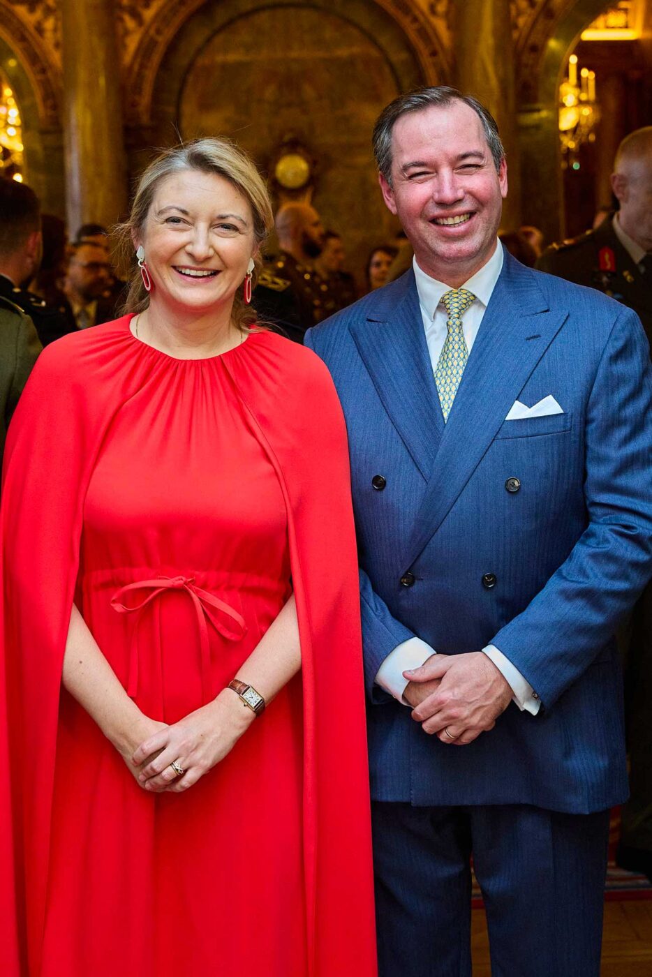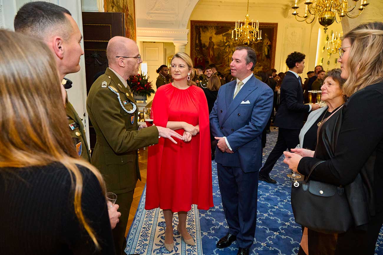Le grand-duc Guillaume et la grande-duchesse Stéphanie de Luxembourg ont organisé leur première réception au château de Berg, la résidence officielle des souverains luxembourgeois. Le grand-duc Guillaume a choisi de poursuivre la tradition que ses parents ont lancée en 2002, en organisant une réception en l’honneur des soldats et policiers qui œuvrent au maintien de la paix lors de missions à l’étranger.