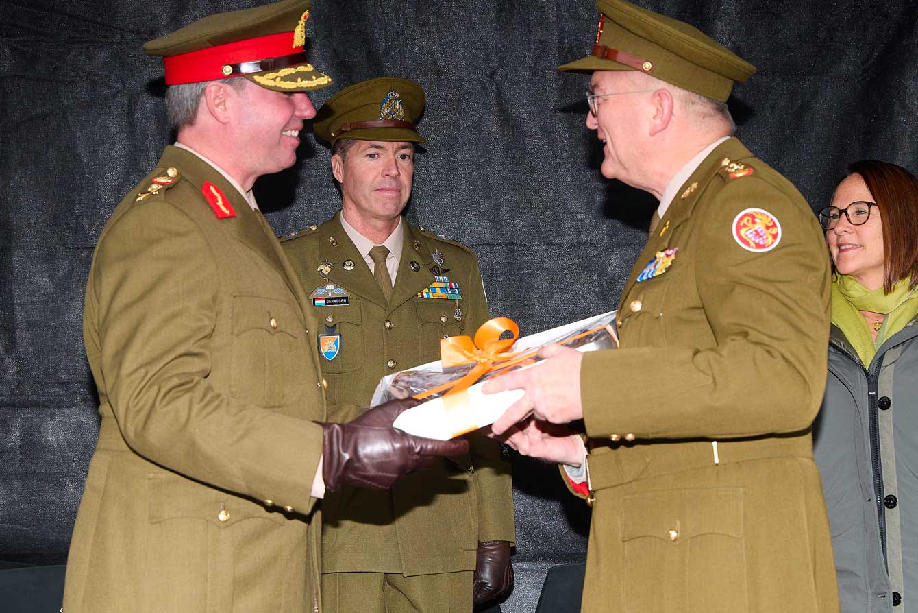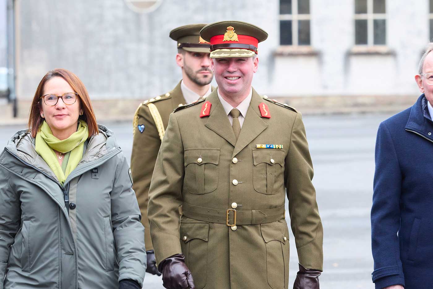 Après l’arrivée du général Steve Thull, chef d’État-major de l’Armée, l’arrivée de la ministre de la Défense, Yuriko Backes, et le passage en revue des troupes par le grand-duc Guillaume, le lieutenant-colonel Nicolas Wenner, aumônier général de la Force publique, a prononcé un discours. L’aumônier a également offert un manteau de saint Martin en brioche au grand-duc. Le colonel Alain Schoeben, commandant des Forces, a également prononcé un discours.