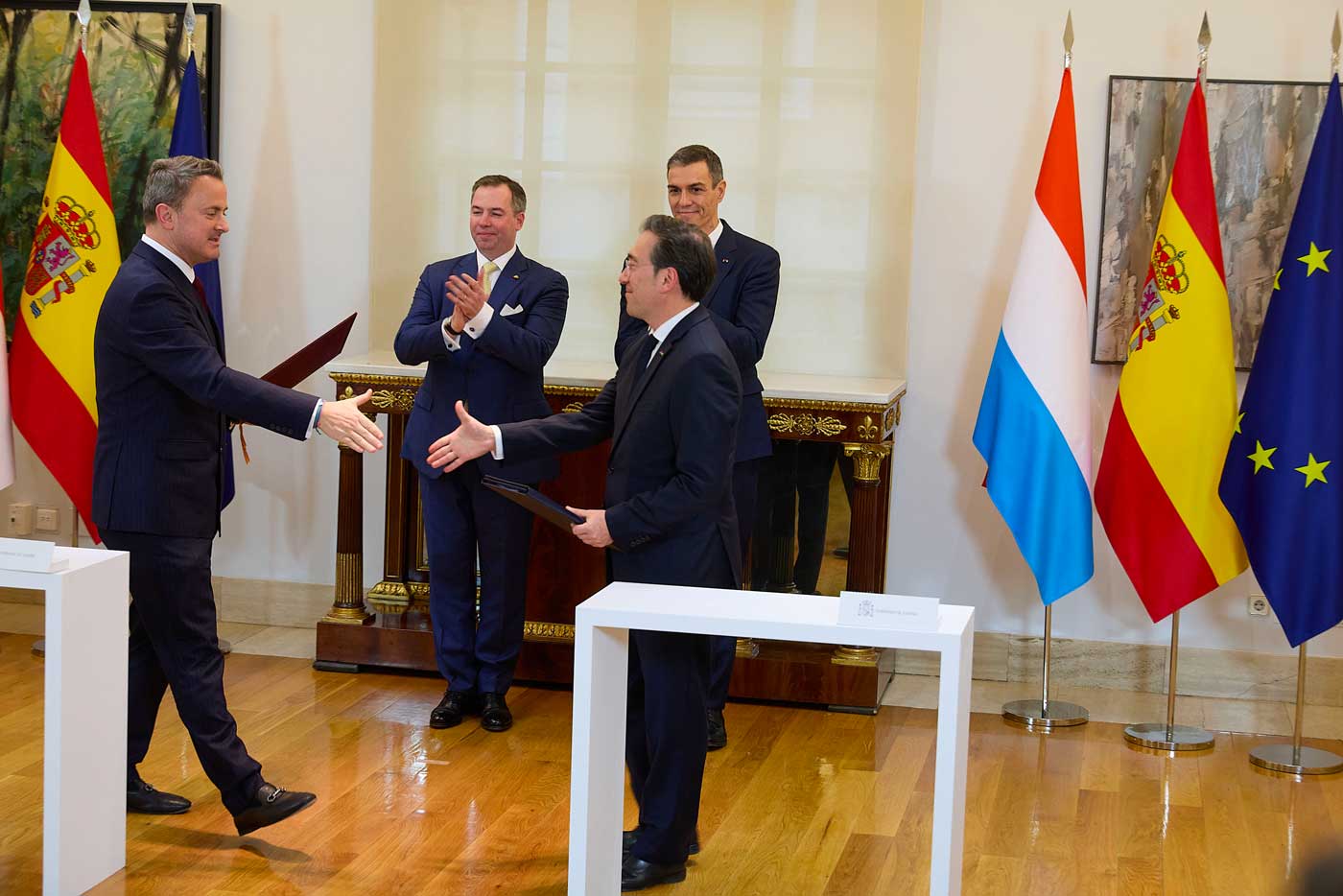 Du côté luxembourgeois, se trouvaient le vice-Premier ministre, ministre des Affaires étrangères et du Commerce extérieur, Xavier Bettel, le ministre de l’Économie, des PME, de l’Énergie et du Tourisme, Lex Delles, ainsi que le ministre des Finances, Gilles Roth. Du côté espagnol, se trouvaient la troisième vice-présidente du gouvernement et ministre de la Transition écologique et du Défi démographique, Sara Aagesen, ainsi que le ministre des Affaires étrangères, José Manuel Albares.