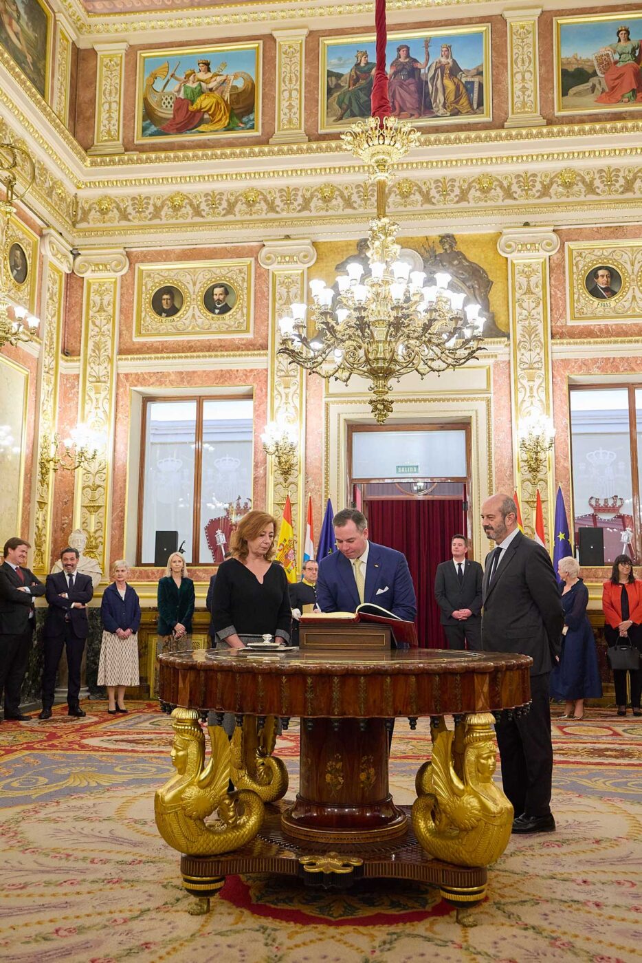 Le grand-duc Guillaume a visité l’hémicycle du Congrès et a signé le livre d’or du palais. Il était aussi accompagné des ministres Lex Delles et Gilles Roth lors de son entretien avec les présidents des deux chambres. Les Cortes Generales, nom donné aux deux chambres parlementaires réunies comptent 616 personnes, soit 360 députés et 266 sénateurs.