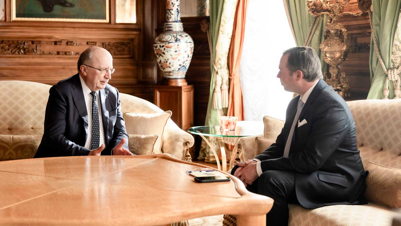 Après la conférence, le grand-duc Guillaume a reçu en audience Andrius Kubilius, commissaire européen à la Défense et à l’Espace (Photo : Maison du Grand-Duc)