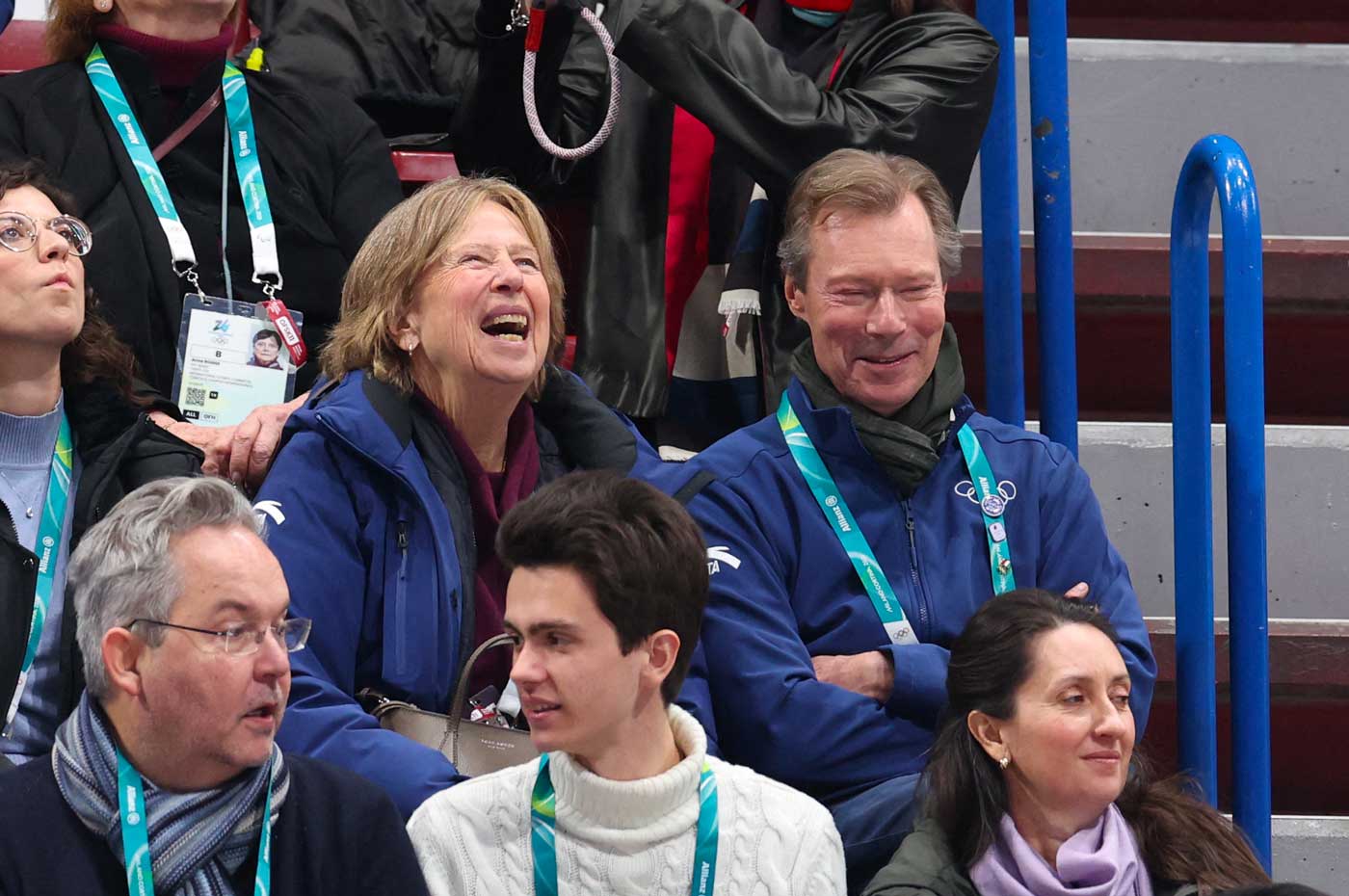 Le grand-duc Henri de Luxembourg et la princesse Nora de Liechtenstein assistent aux épreuves de patinage artistique aux Jeux olympiques