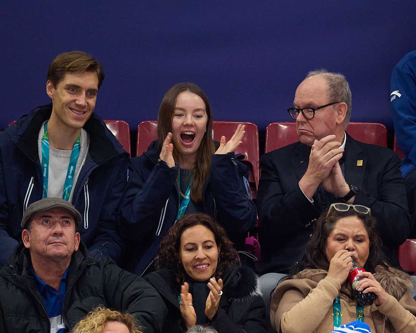 Non loin du grand-duc Henri, un autre membre du CIO, le prince Albert II de Monaco, 67 ans, assistait à cette finale de patinage artistique. Le prince Albert était venu en famille. À côté de lui était assise sa nièce, la princesse Alexandra de Hanovre, 26 ans, venue avec son compagnon, Ben-Sylvester Strautmann. La princesse Alexandra assiste à toutes les épreuves de patinage, s’agissant de sa passion. Elle-même a commencé à patiner dès l’âge de 10 ans. La princesse a participé à plusieurs compétitions durant son enfance et son adolescence. Elle fut même désignée comme porte-drapeau de la fédération monégasque lors du Festival olympique de la Jeunesse européenne d’hiver en 2015.