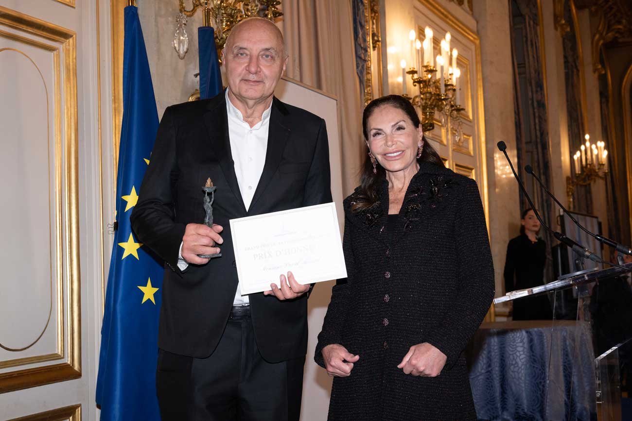 Pascal Morand, président de la Fédération de la haute couture et de la mode après avoir reçu son prix du Rayonnement culturel des mains de Mona Ayoub (Photo : David Nivière)