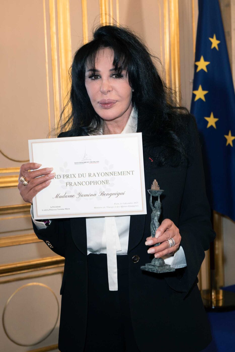 Le Grand Prix du Rayonnement français a été créé en 2009 par la sénatrice Joëlle Garriaud-Maylam. La sénatrice, aujourd’hui présidente d’honneur du prix, a transmis la présidence de son prix à la princesse Yasmine Murat, épouse du prince Joachim, lui-même héritier de la Maison Murat. Ce 4 décembre 2025, la princesse Yasmine a présidé la cérémonie de remise des prix de l’association, au cours d’une soirée de prestige sous les ors du Quai d’Orsay.