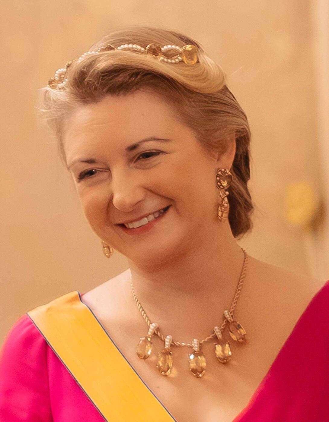 La grande-duchesse Stéphanie porte son diadème bandeau de perles et citrine