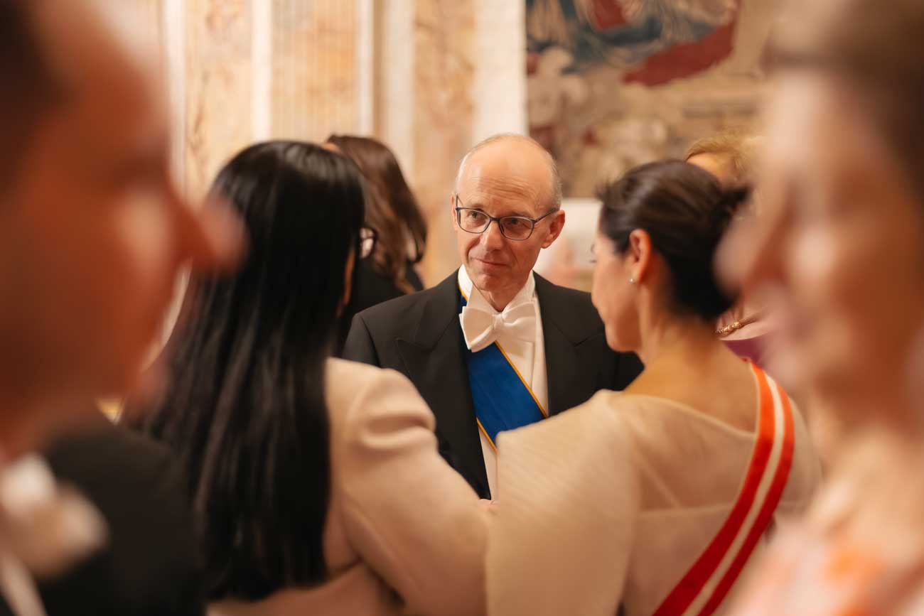 Le grand-duc Henri a abdiqué le 3 octobre 2025 et c’est dorénavant à son fils Guillaume d’assurer les plus hautes fonctions en tant que chef d’État. Le grand-duc Guillaume a endossé son rôle à la perfection, ce mercredi soir au palais grand-ducal, lors de cette réception à laquelle étaient conviés le président et les membres du bureau de la Chambre des députés, le Premier ministre, les membres du gouvernement, les membres du Conseil d’État, les hauts représentants de l’ordre judiciaire, ainsi que les membres du corps diplomatique accrédité au Luxembourg et les représentants des institutions européennes.
