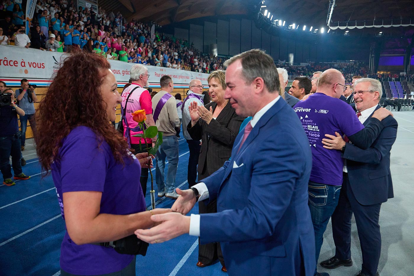 La grande-duchesse Stéphanie remet des roses aux survivants (Photo : Jean-Claude Ernst/LUXPRESS)