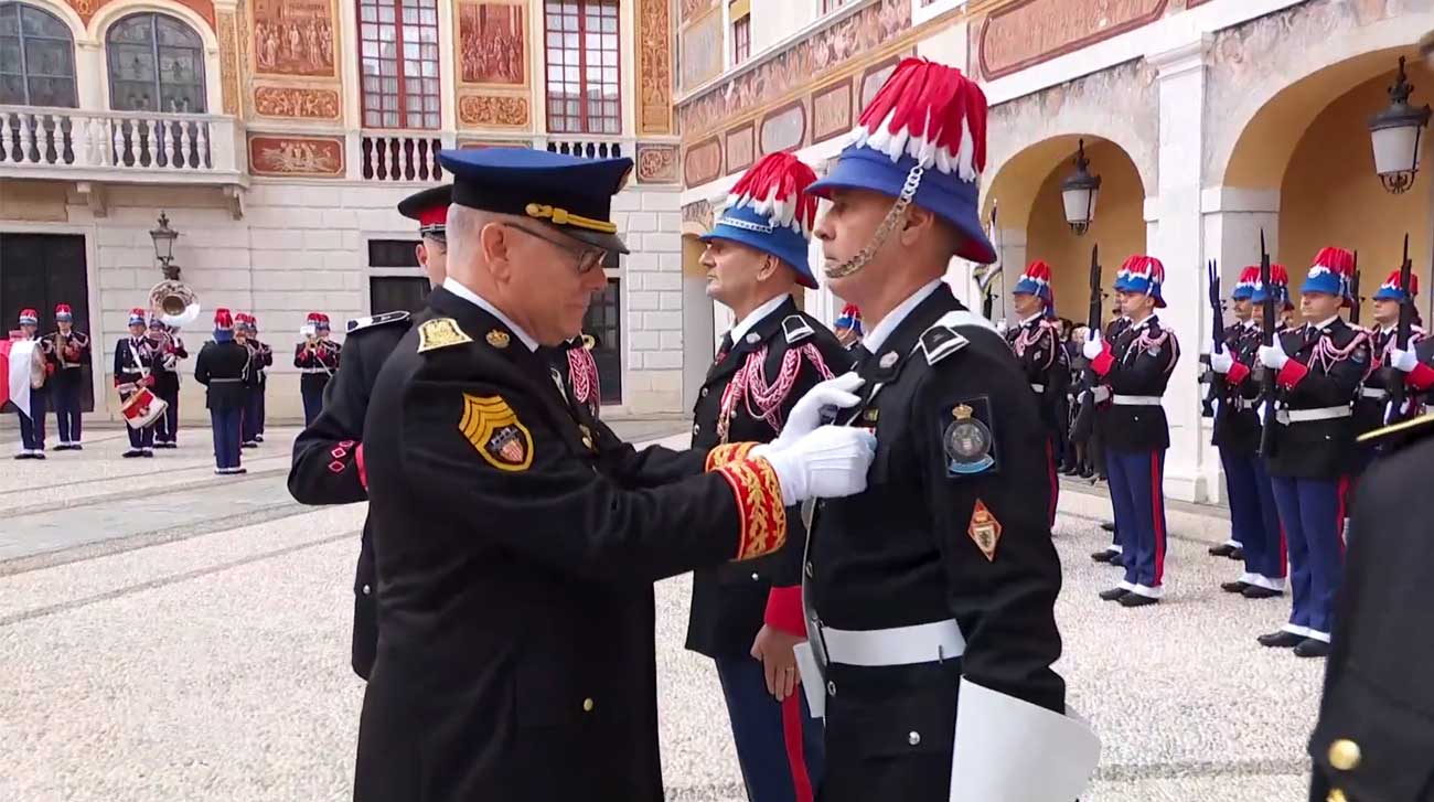 Après la prise d’armes, le prince Albert a remis des grades à 31 militaires de la force publique. Deux insignes de l’ordre de Saint-Charles ont été remis à des carabiniers, dont l’un est le porte-étendard du Prince, qui termine sa carrière. Des médailles honorifiques, dont des médailles pour services exceptionnels au service de la famille princière, ont été décernées. Couturière du palais, coursier, secrétaire, plombiers ou encore cuisiniers ont reçu une médaille d’honneur.