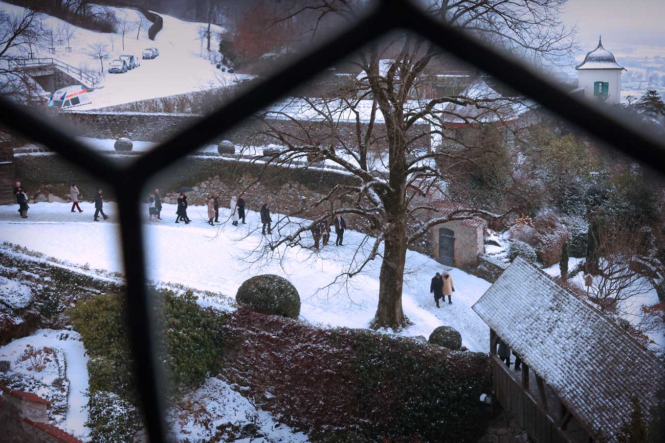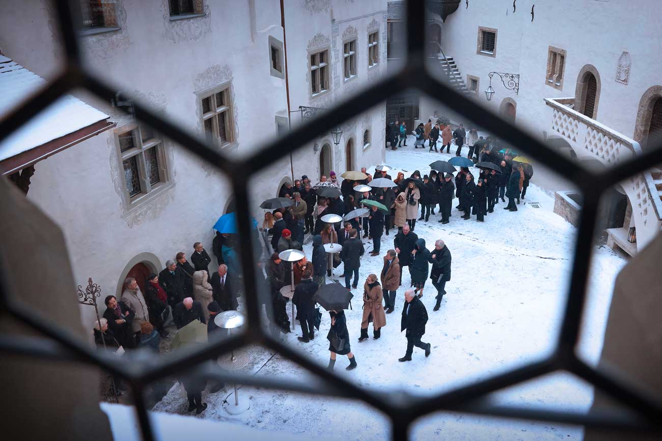 Les membres du parlement régional, du gouvernement et du clergé, les élus locaux, les présidents de tribunaux, les présidents des partis politiques, les hauts fonctionnaires et les récipiendaires des ordres princiers du Liechtenstein étaient invités à se rendre au château de Vaduz pour prendre un verre et échanger avec les princes et princesses de Liechtenstein. Le gouvernement a partagé des photos de l’événement sur lesquelles on peut voir les centaines d’invités faire la queue dans la neige devant le château. Tous les invités ont salué un à un le souverain et sa belle-fille à leur arrivée au château.