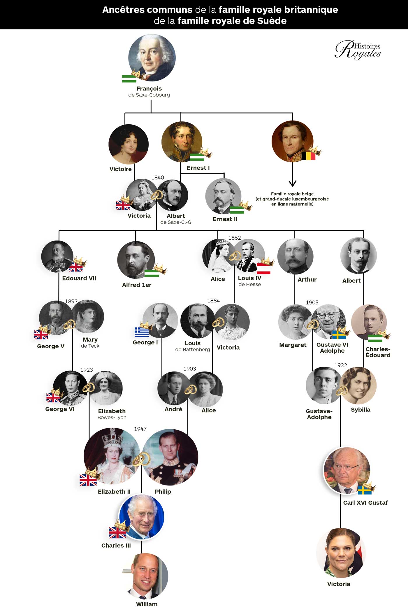 Le roi Carl XVI Gustaf et le prince William sont cousins. Parmi leurs nombreux ancêtres en commun, le plus proche est la reine Victoria. Charles III et le roi Carl XVI Gustaf sont d’ailleurs tous les deux des doubles descendants de la reine Victoria, soit en ligne maternelle et paternelle. La mère du roi Carl XVI Gustaf était une princesse de Saxe-Cobourg et Gotha, fille du dernier souverain duché et arrière-petite-fille de Victoria. Quant à la grand-mère du roi Carl XVI Gustaf, elle était une petite-fille de la reine Victoria.