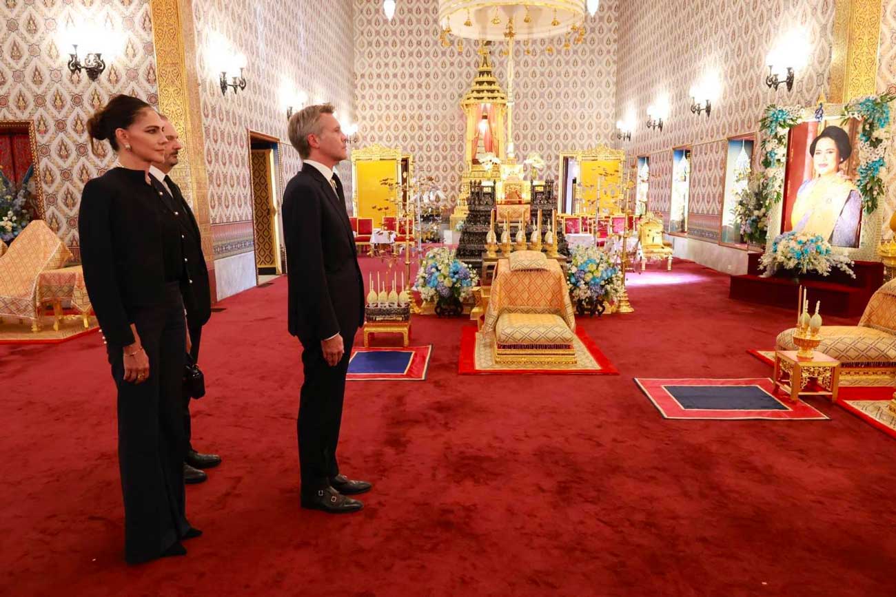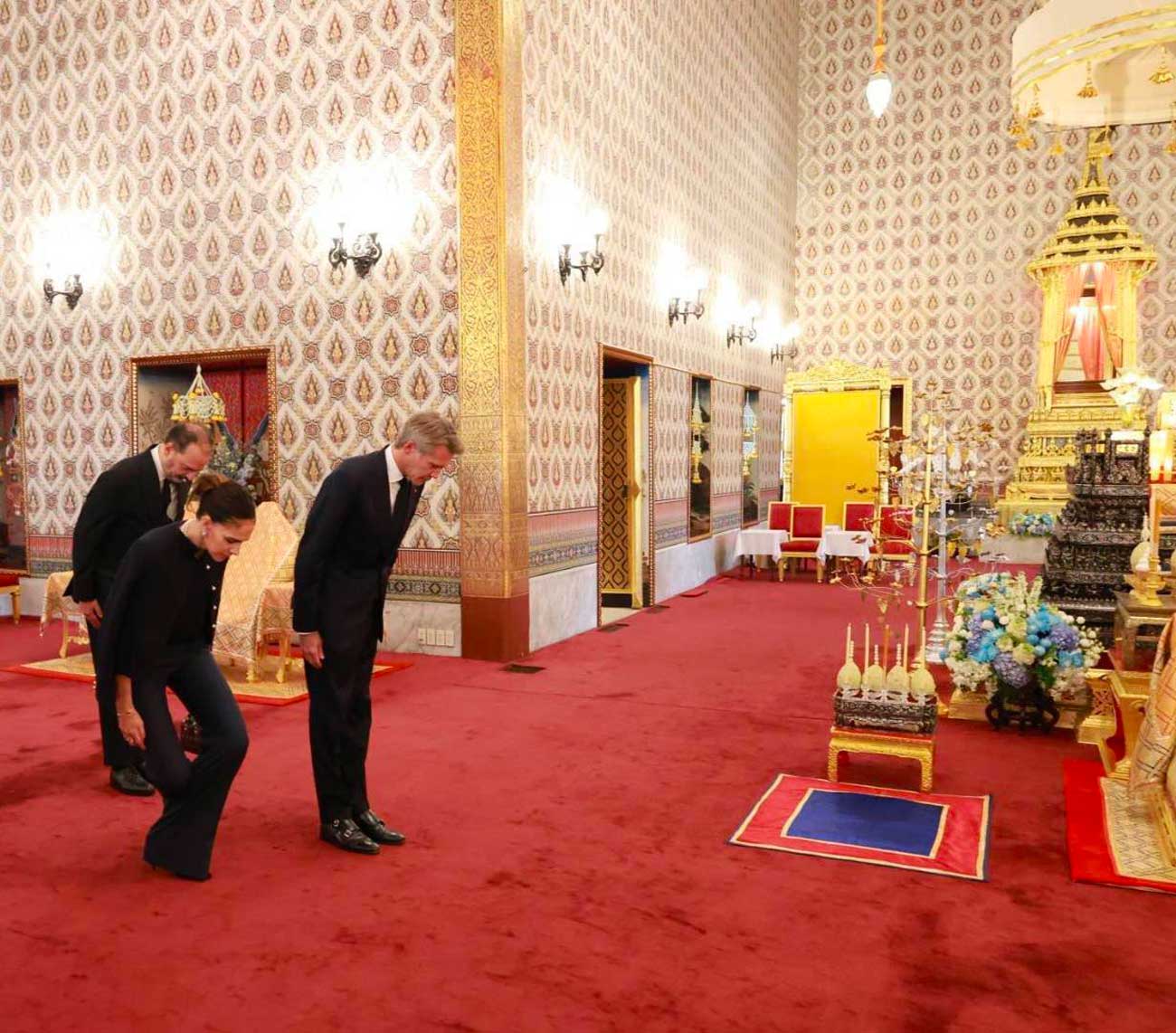 L’hommage du prince Emmanuel-Philibert à la reine Sirikit dans la salle du Trône du palais royal de Bangkok