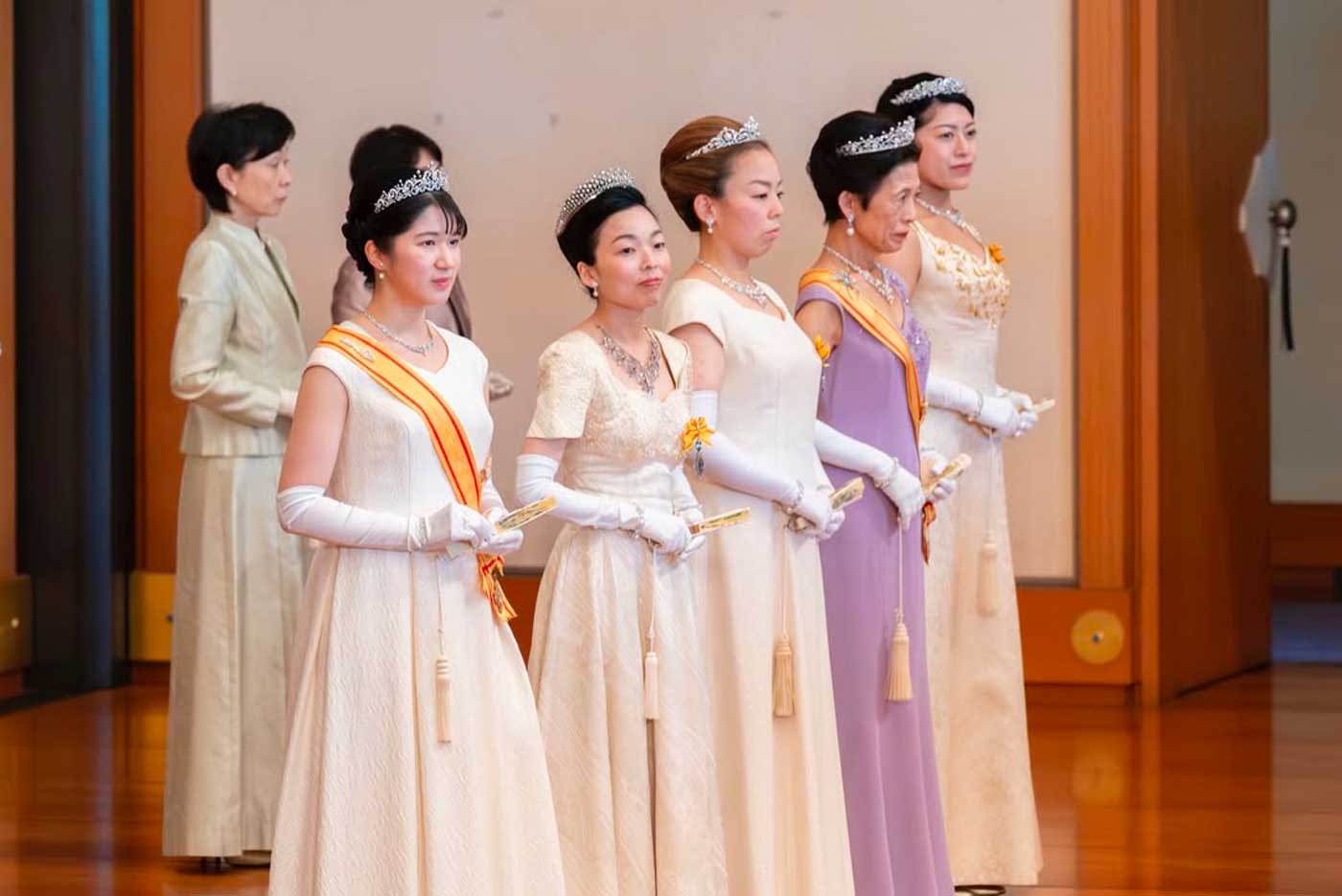 Lors de cette réception, les femmes de la famille impériale ont pour habitude de porter leurs parures de diamants et leurs robes de couleur pastel. Contrairement à d’autres monarchies, les princesses n’ont pas le loisir de choisir leurs diadèmes en fonction des occasions. Traditionnellement, chaque princesse de naissance reçoit son propre diadème à ses 18 ans et les princesses par mariage le reçoivent le jour de leur mariage. Les diadèmes de la famille impériale sont toujours en diamants, avec parfois des perles mais ils ne sont jamais sertis de pierres de couleur.