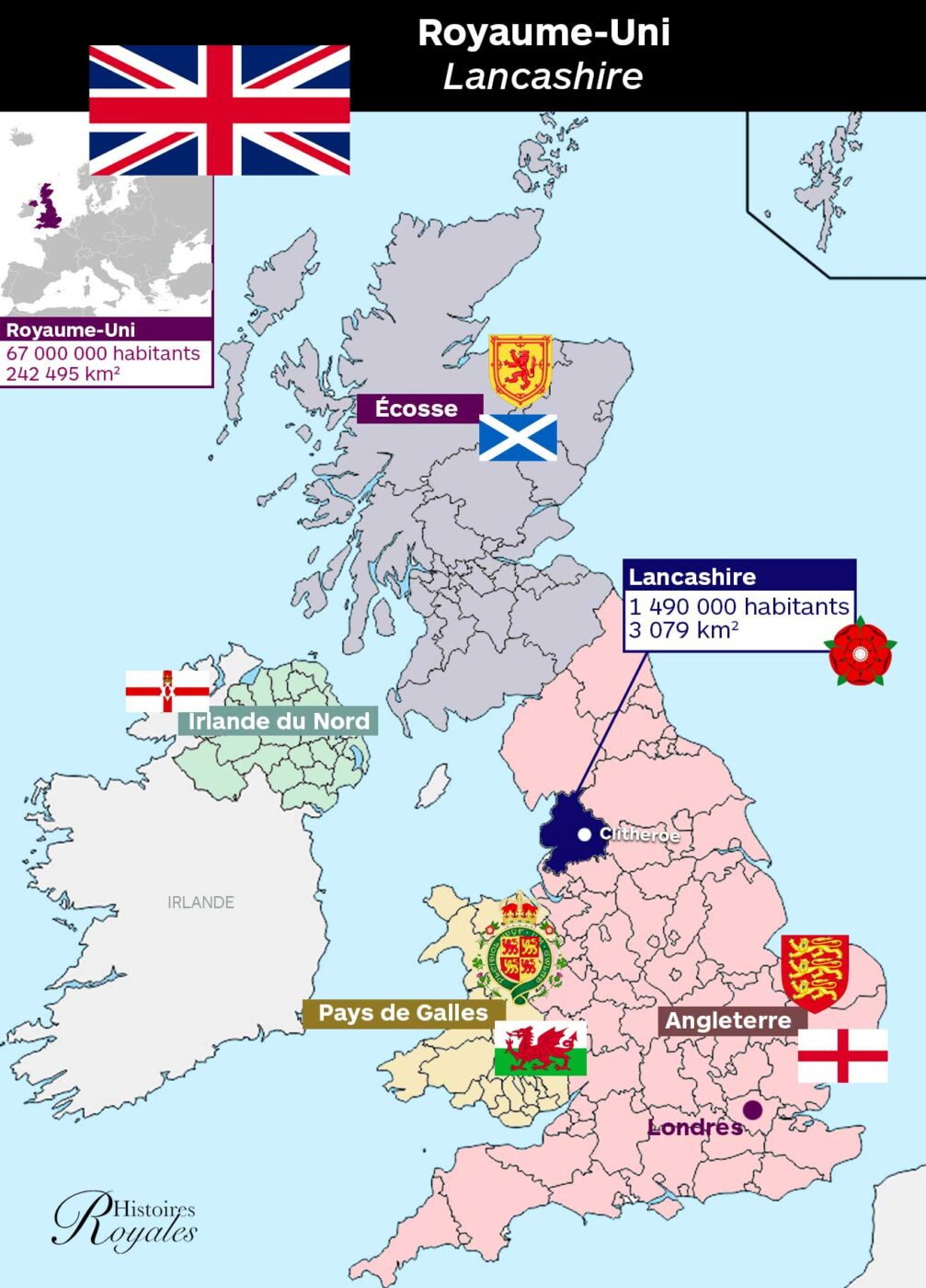 Ce lundi 9 février 2026, le roi Charles III du Royaume-Uni, 77 ans, s’est rendu pour la deuxième fois depuis le début de son règne en 2022, dans le Lancashire. Le Lancashire est un comté du nord-ouest de l’Angleterre, situé au nord de Manchester. Le roi Charles III est arrivé à bord du train royal, à la gare de Clitheroe, une bourgade de 17 000 habitants, souvent listée parmi les localités les plus agréables où vivre au Royaume-Uni, selon différents journaux, dont le Times.