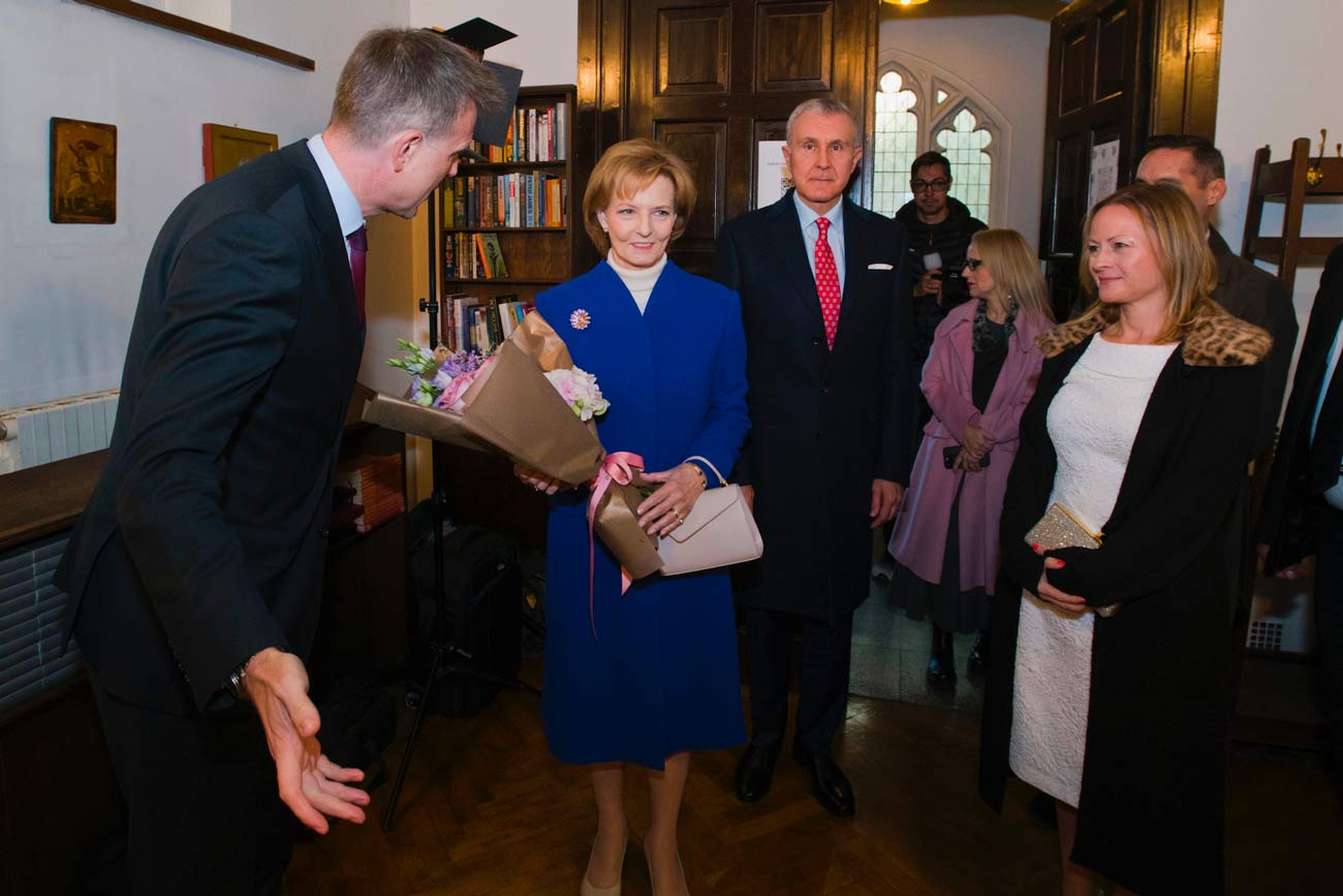 Le prêtre Nevsky Everett, de la paroisse anglicane de Bucarest, a prononcé un discours de bienvenue, en rappelant l’histoire de sa paroisse et le rôle que la reine Marie a joué dans cette histoire. La reine Marie est venue en Roumanie avec sa religion mais son parcours spirituel est des plus riches et des plus étonnants. La reine Marie a toujours défendu la multiconfessionnalité de sa famille. Marie a épousé un orthodoxe. Elle-même est convertie à la foi orthodoxe en 1926. Vers la fin de sa vie, elle rejoint la foi bahá’ie. Elle est la seule monarque au monde à avoir adopté cette religion.