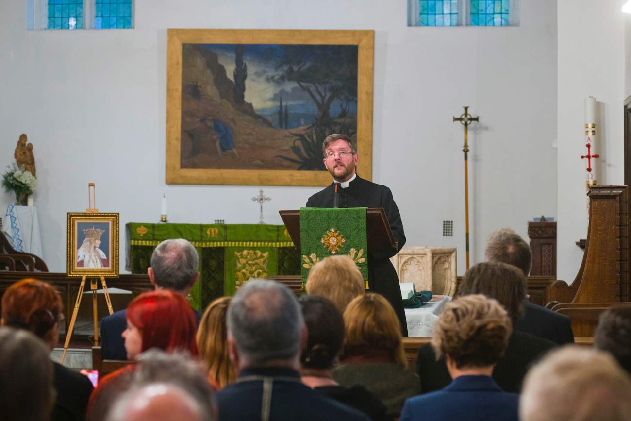 Le prêtre Nevsky Everett, de la paroisse anglicane de Bucarest, prononce un discours de bienvenue (Photo : Daniel Angelescu, Casa Majestății Sale)