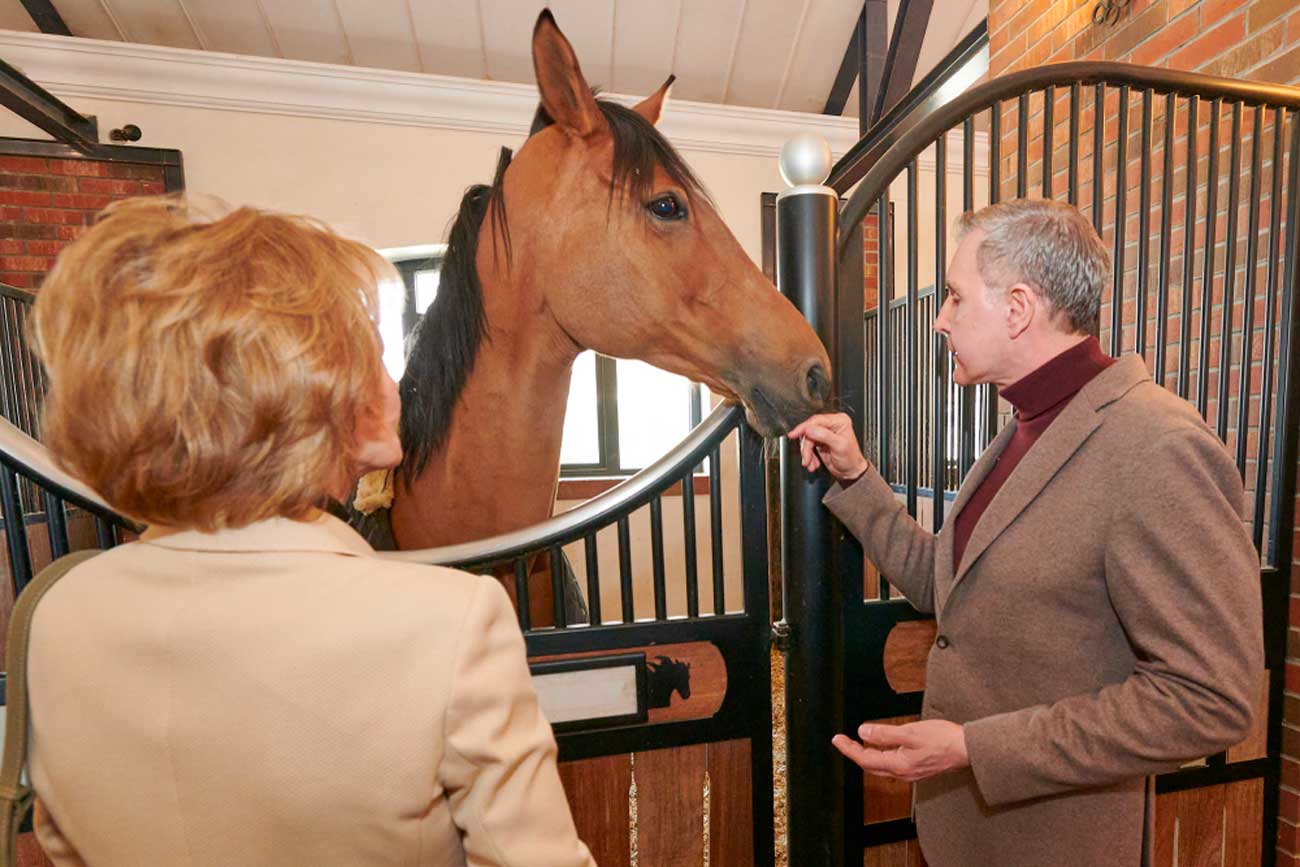 La Gardienne de la Couronne et le prince consort étaient accompagnés du directeur de la Fondation de la Collection royale, Radu Ghină. Margareta et Radu de Roumanie ont visité le club, ses infrastructures intérieures et extérieures. Le couple royal a bien entendu fait un tour dans l’écurie pour y rencontrer les chevaux.