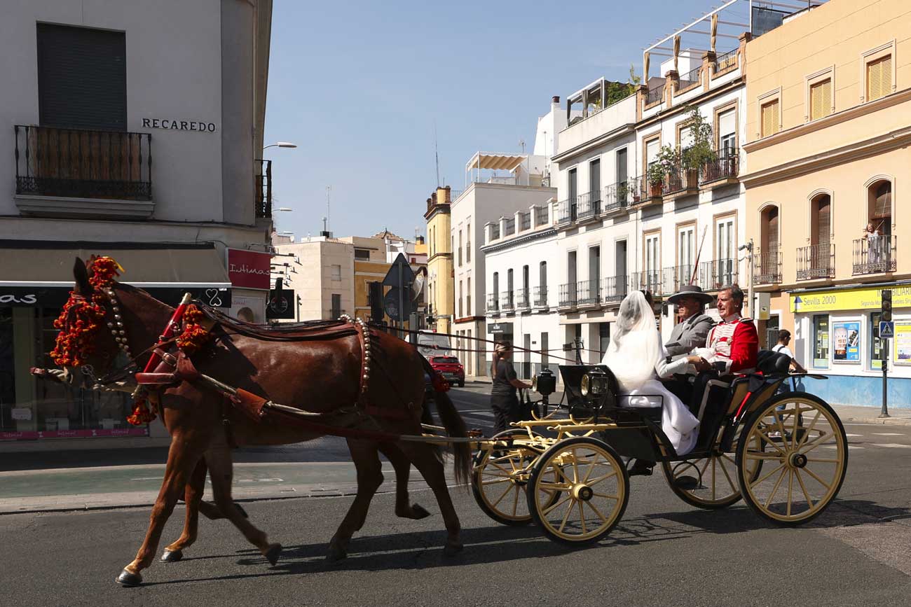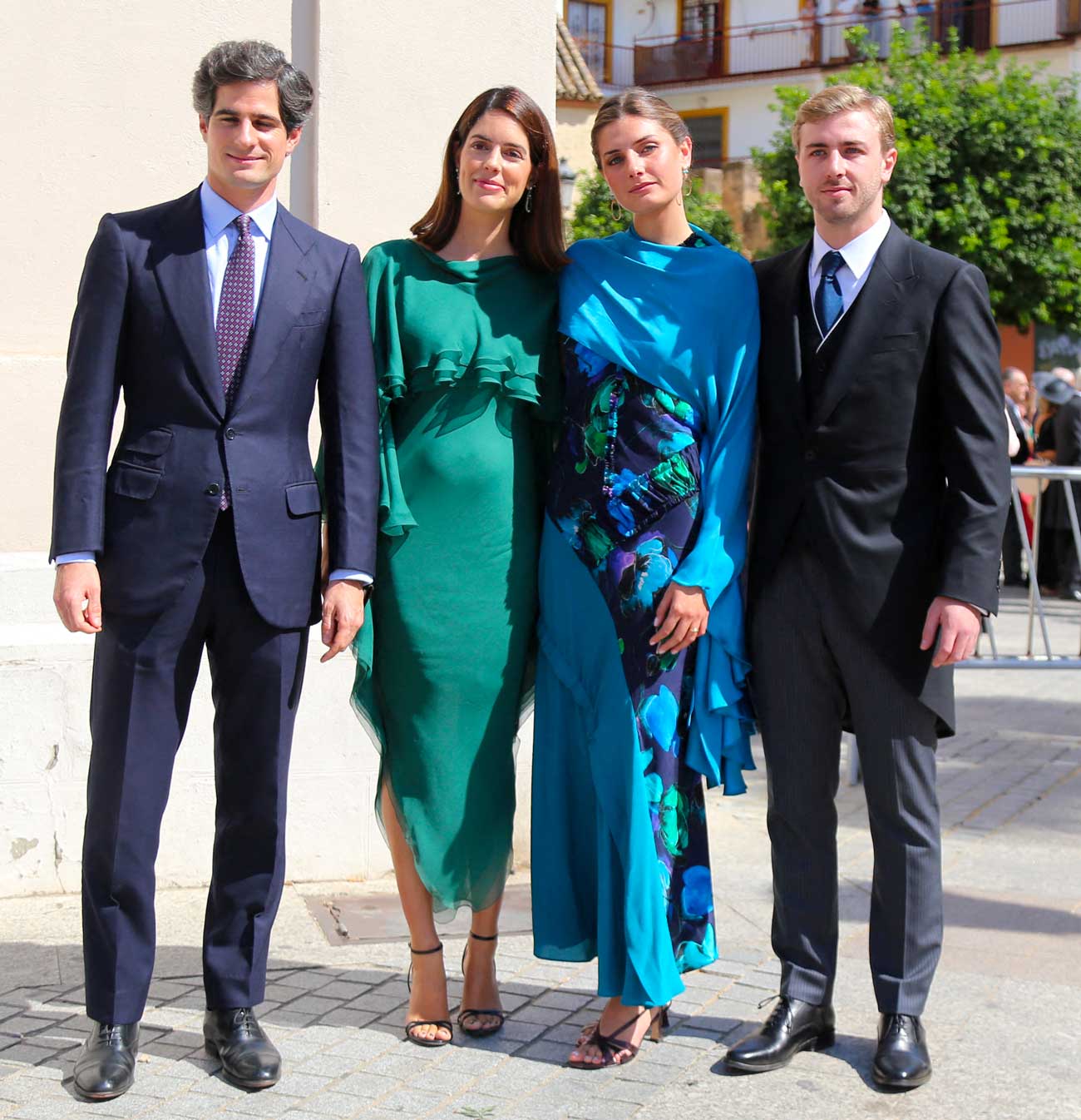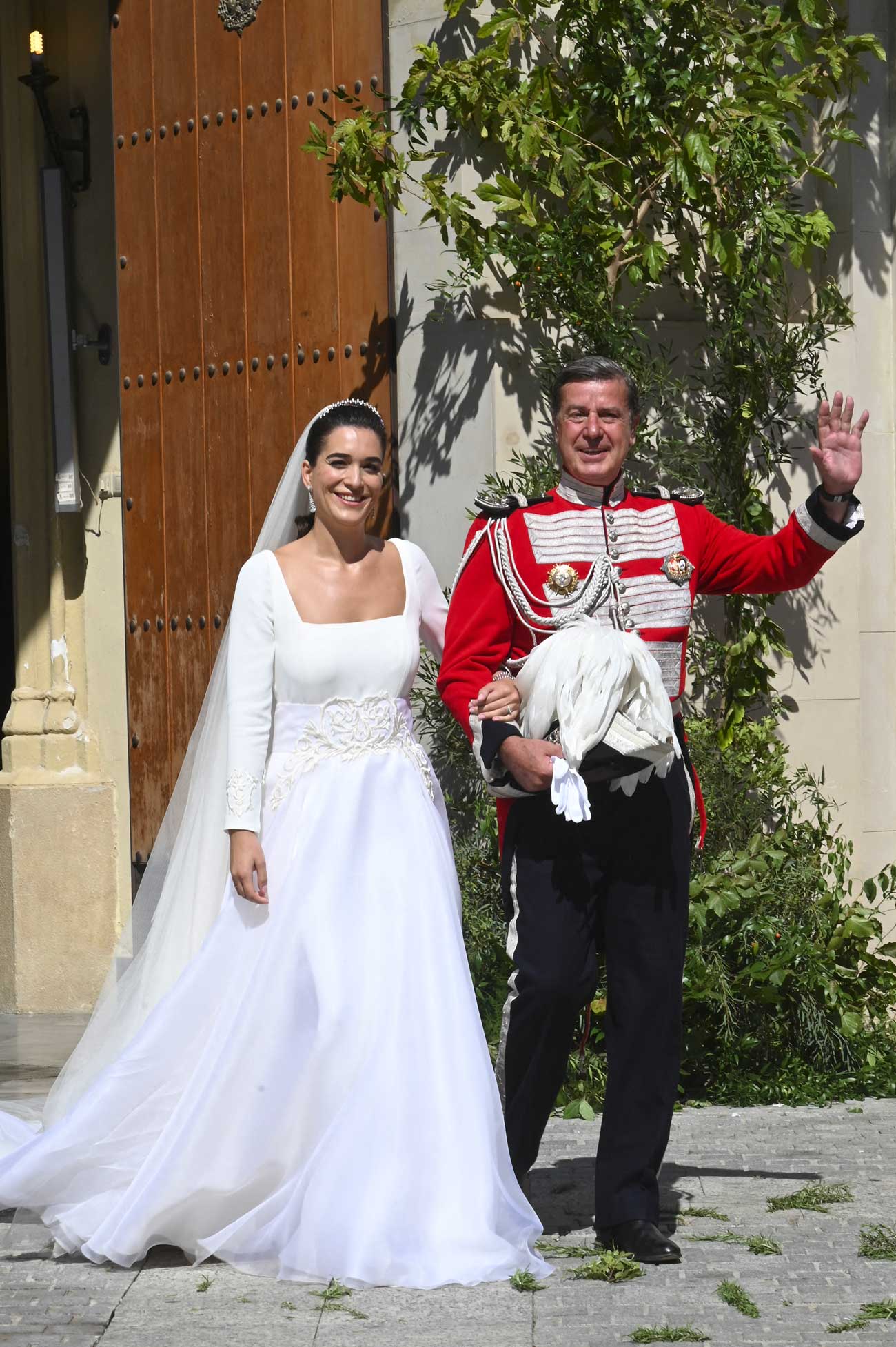 Le marié portait le majestueux uniforme rouge de la Real Maestranza de Caballería de Sevilla et la mariée portait une robe de mariée de la maison Navascués, ainsi qu’un discret diadème. La noblesse espagnole était réunie à Séville pour assister au mariage de Cayetano, le frère du duc d’Albe. De tout temps, les ducs d’Albe ont été proches de la famille royale et la famille est l’une des plus prestigieuses au sein de la noblesse du royaume d’Espagne.