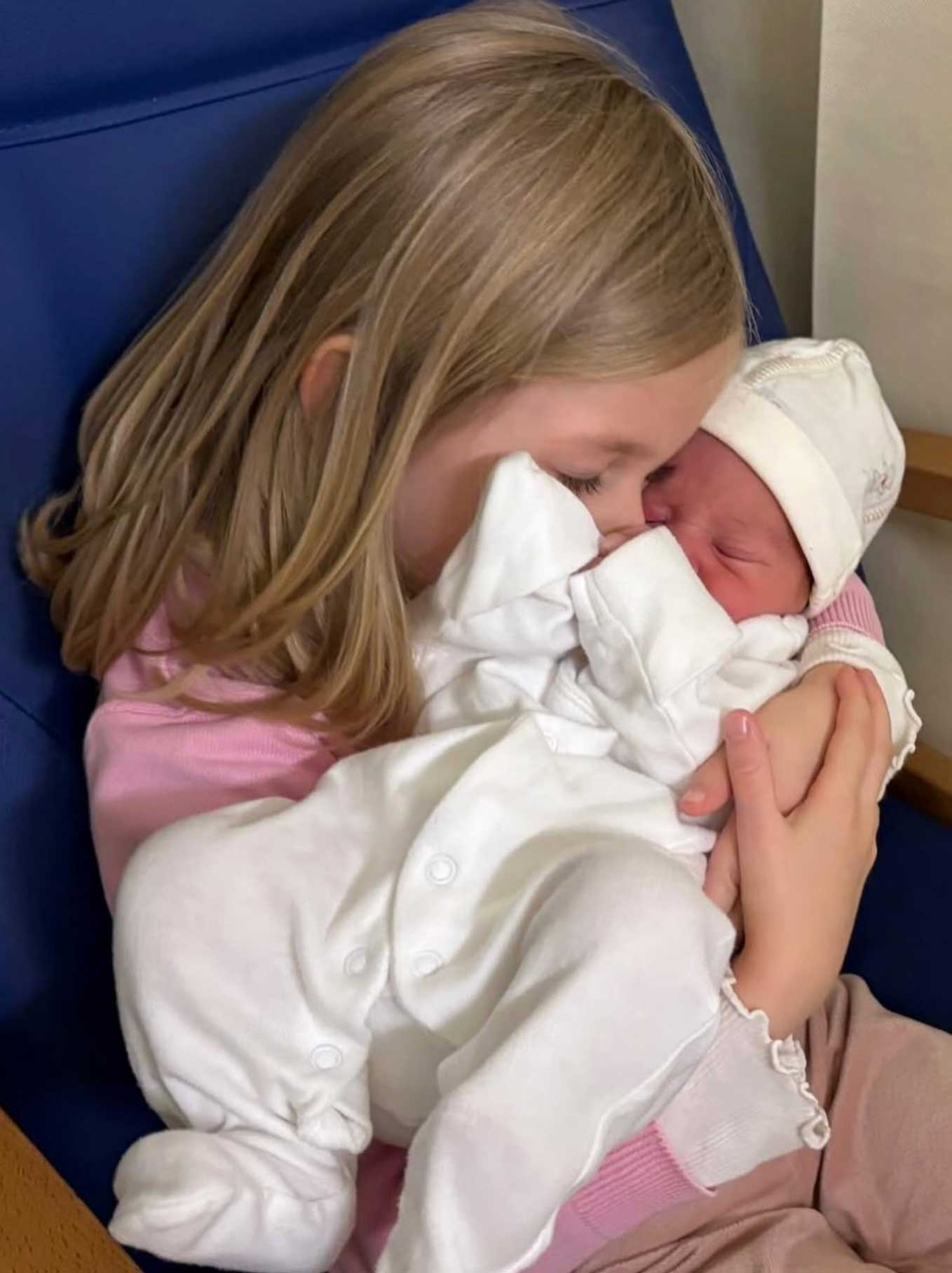Filippa Akhavan-Kharazian fait la rencontre de son petit frère Nicolas Akhavan-Kharazian, né ce 21 décembre 2025, quatorzième petit-enfant du 7e prince de Sayn-Wittgenstein-Sayn (Photo : Schloss Sayn)