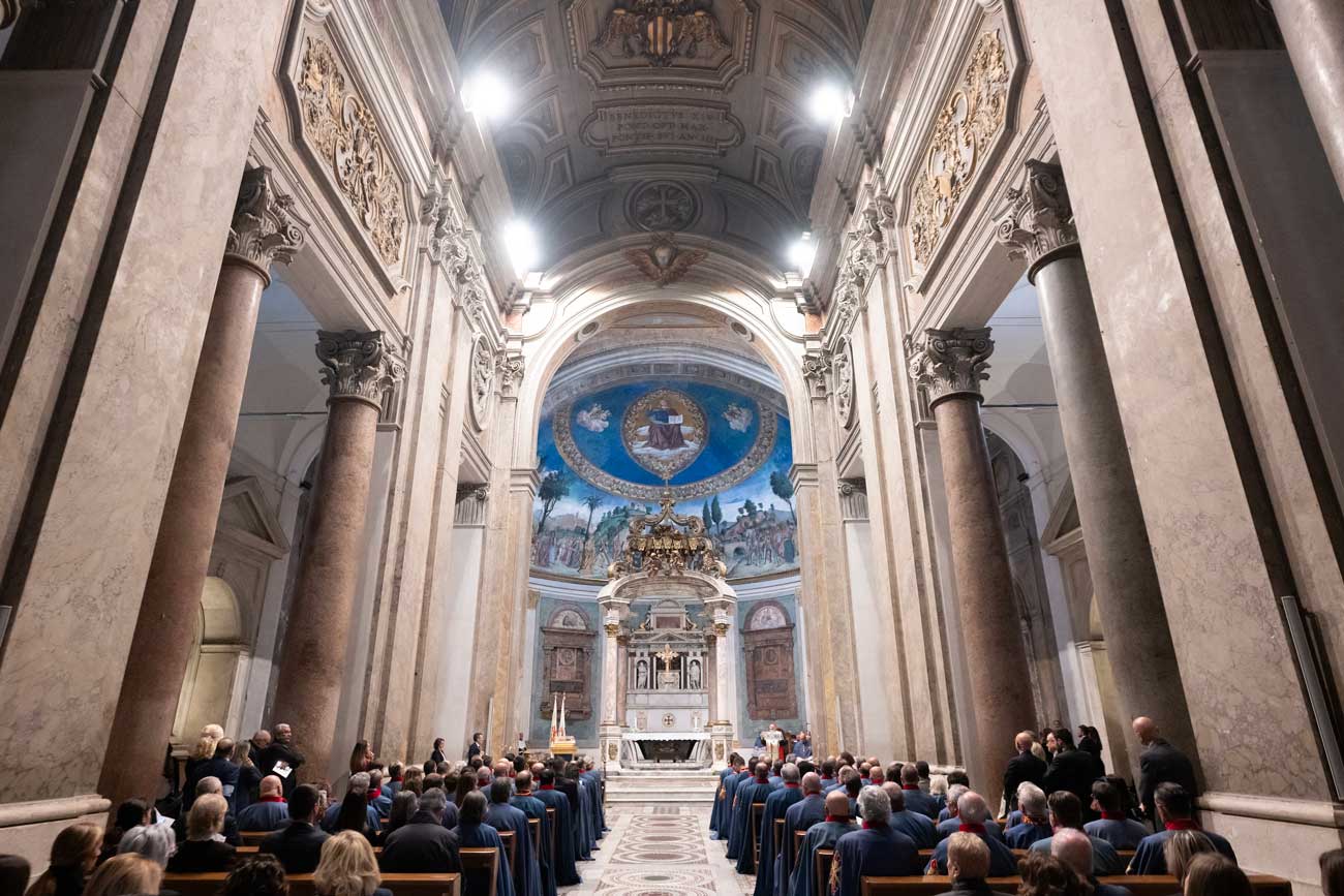 Lors de la cérémonie, les nouveaux chevaliers et dames de l’ordre sacré et militaire constantinien de Saint-Georges ont été investis devant l’assemblée. Au cours de la cérémonie, le cardinal Marcello Semeraro, préfet du dicastère pour les Causes des Saints et grand prieur de l’Ordre, a réitéré le message de paix du pape Léon XIV, rappelant aux nouveaux membres que la véritable essence d’un chevalier est de servir les plus faibles avec humilité et amour.