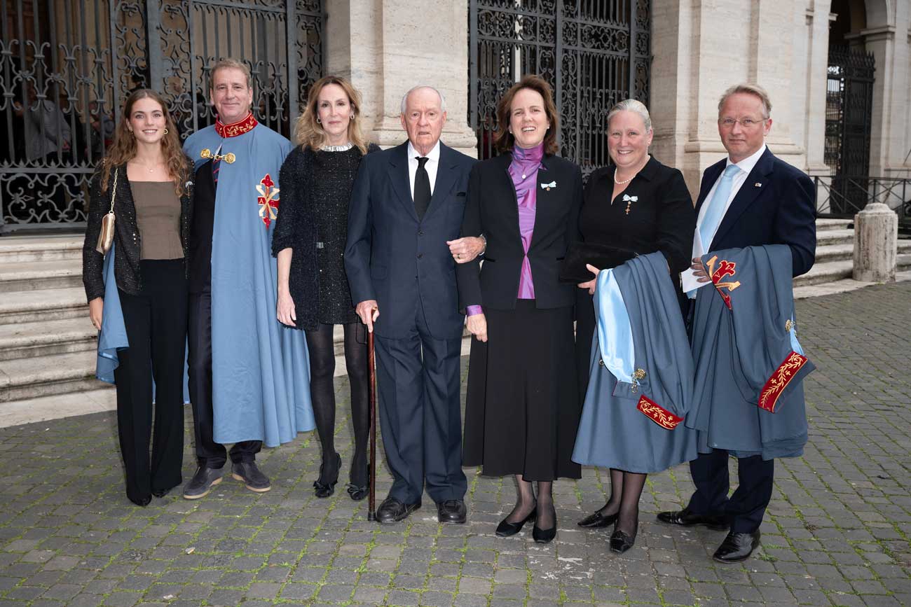 Les chevaliers et dames des ordres ont également assisté à un office à la basilique Saint-Jean-de-Latran. Comme le veut la tradition, les membres des ordres ont pu traverser la Porte sainte, qui s’ouvre uniquement lors des Années jubilaires. C’est ici que s’achève ce pèlerinage jubilaire, un événement riche en symboles, qui ravive l’esprit chrétien des ordres dynastiques. Cet événement caritatif a permis de récolter 100 000 euros, qui ont été remis au marquis Niccolò Sacchetti, président du Circolo San Pietro. Ce cercle a été fondé par le pape Pie IX en signe de solidarité envers les pauvres de Rome. Ce don, fruit de la générosité des membres de l’ordre, renouvelle l’engagement séculaire des chevaliers au service de la foi et de la solidarité.
