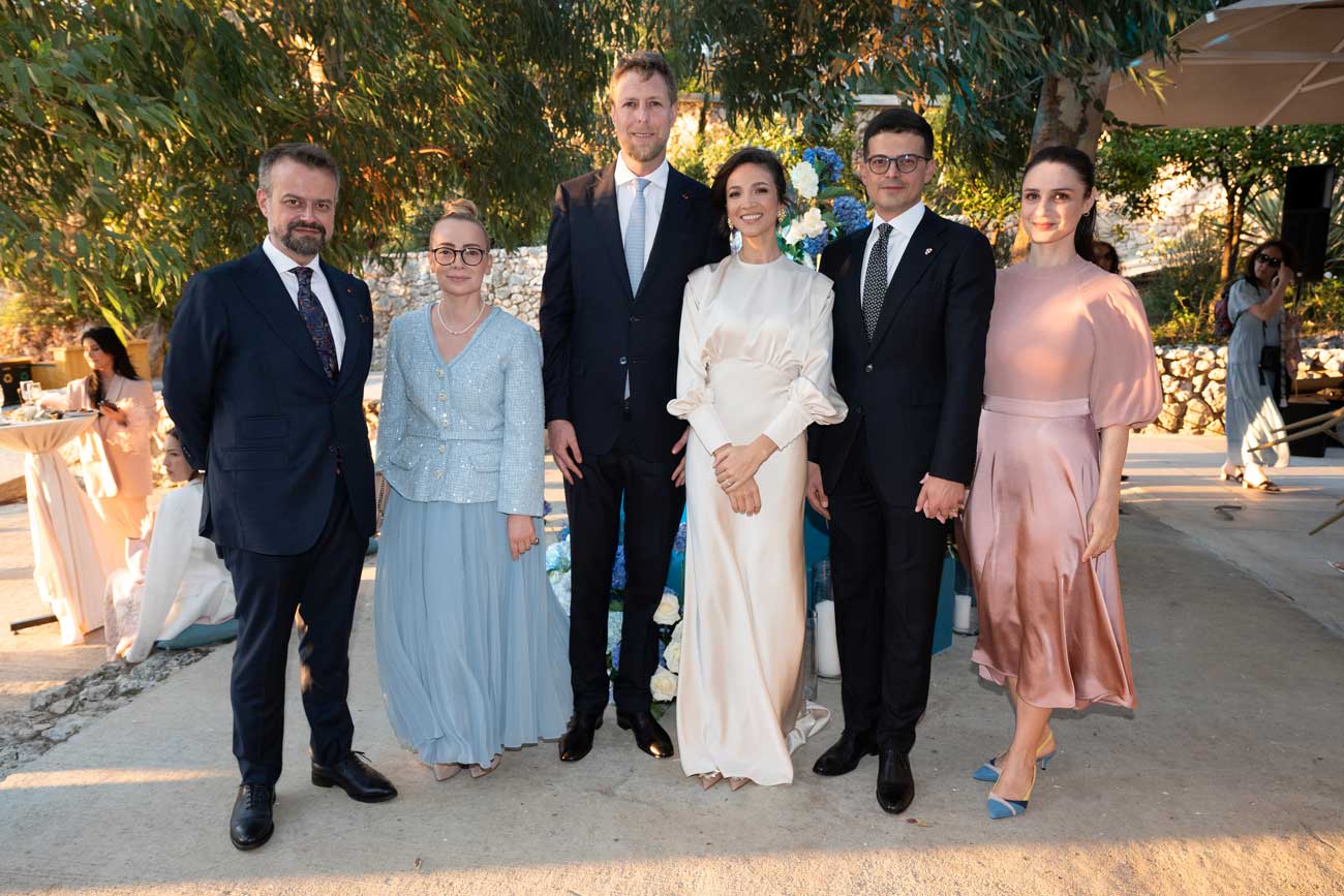 Thomas Frasheri, conseiller auprès du Premier ministre et parrain de la princesse Géraldine, avec son épouse Dhurata Frasheri, le prince Leka II, Blerta Celibashi, Pirro Vengu, ministre de la Défense d’Albanie et son épouse Eda Vengu (Photo : David Nivière)
