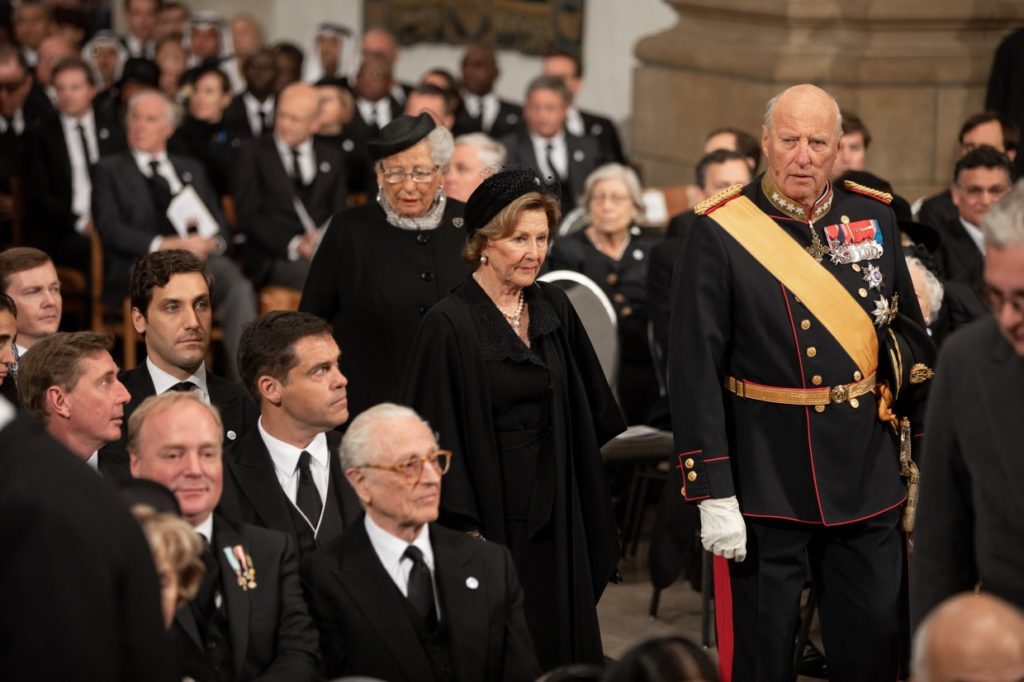 Dans la foule, on a pu apercevoir le roi Albert II de Belgique et son épouse, la reine Paola. Joséphine-Charlotte, la sœur du roi Albert II, décédée en 2005, était l’épouse du feu grand-duc Jean. Le roi Philippe de Belgique et la reine Mathilde avait aussi fait le déplacement. L’ancienne reine des Pays-Bas, la princesse Beatrix portait un long manteau noir de deuil et le prince Albert de Monaco était assis à côté de l’ancien président de la République française, Nicolas Sarkozy. Sa Majesté le roi Harald V de Norvège était accompagné de la reine Sonja. Les hommes de l’assemblée portaient tous leurs tenues militaires de cérémonie.