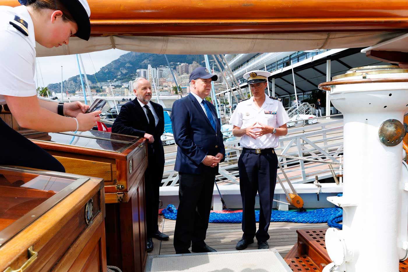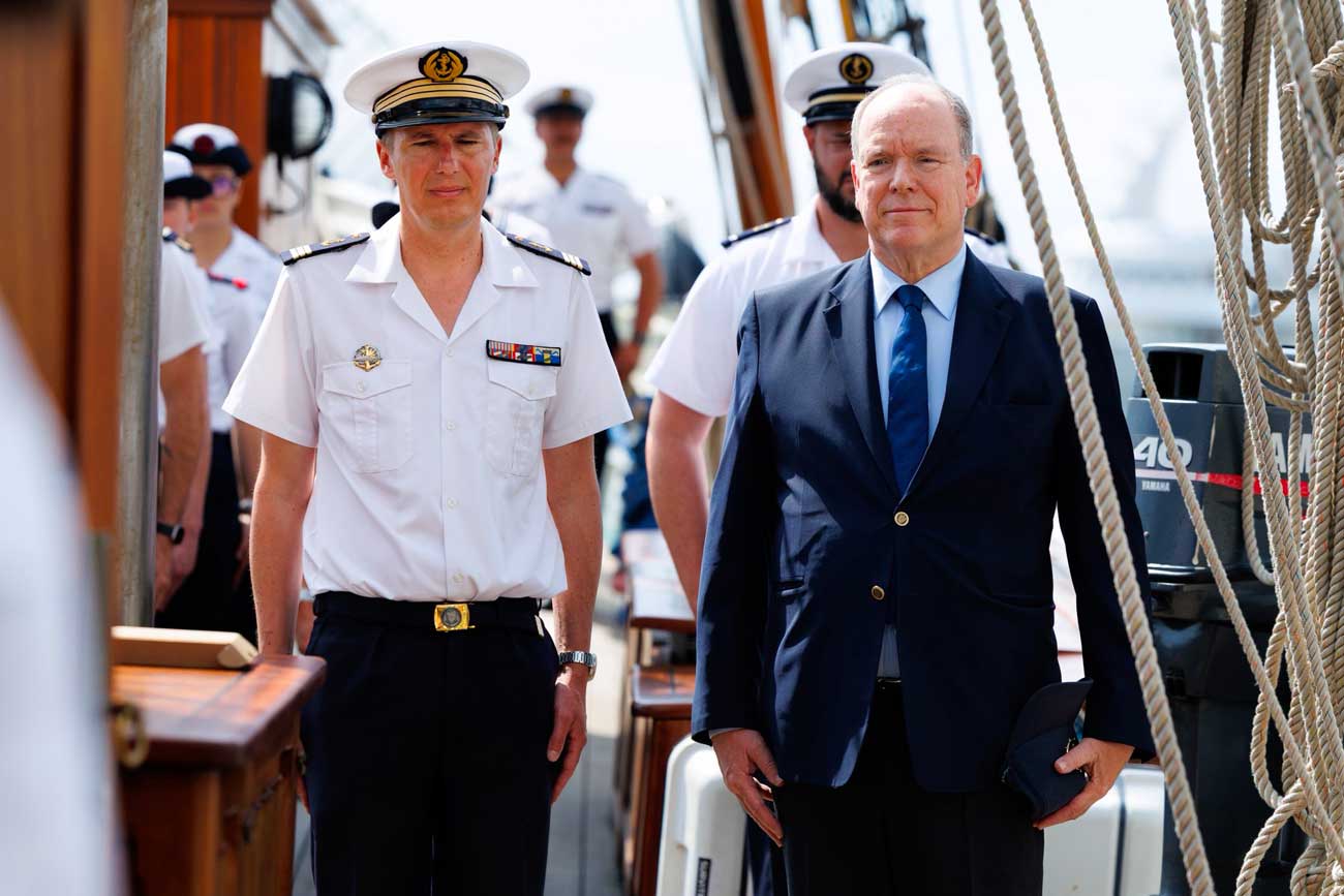 Le prince Albert II de Monaco est monté à bord de cette goélette-école ce 28 avril 2026. Le souverain monégasque a été accueilli par le lieutenant de vaisseau Victor Kaars Sijpesteijn, accompagné par l’ambassadeur de France à Monaco, Jean d’Haussonville.