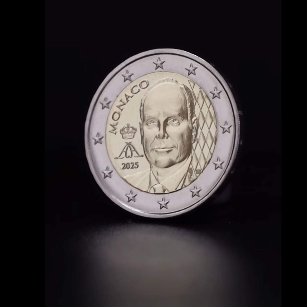 Les pièces comprendront l’inscription du millésime 2025, le portrait du souverain de face et non plus de profil. Près du portrait, se trouvera dorénavant le monogramme du prince Albert. Le portrait est posé sur un fond fuselé, qui rappelle le « fuselé d’argent et de gueules », soit les losanges rouges et blancs du blason des Grimaldi. Depuis la création de l’euro, il y a environ 12 millions de pièces monégasques de 1 et de 2 euros qui ont été mises en circulation. Il y a environ 5 millions de pièces de valeurs inférieures qui ont été frappées et environ 2 millions de pièces commémoratives, ce sont des pièces de 2 euros, qui ont été frappées à l’occasion d’événements historiques.