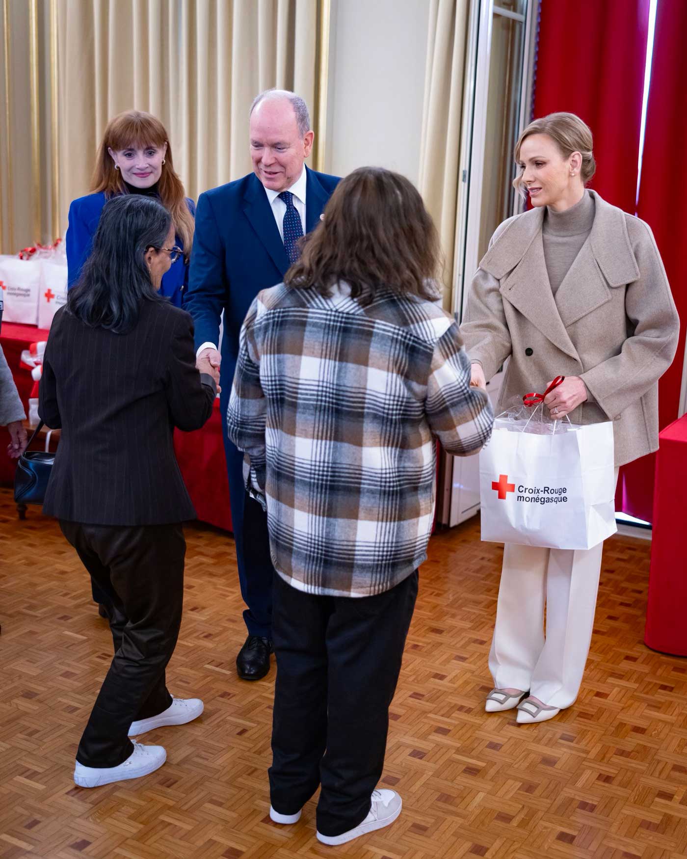 Le prince Albert, la princesse Charlène et Camille Gottlieb offrent des colis et des sourires aux bénéficiaires de la Croix-Rouge monégasque