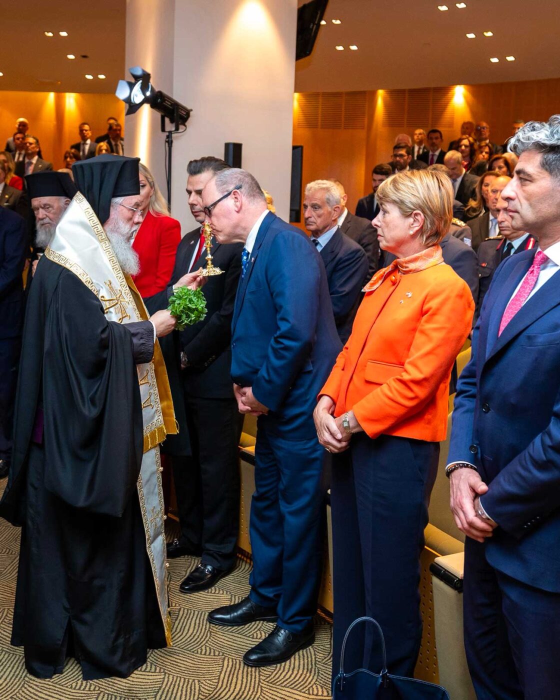 La cérémonie d’inauguration s’est déroulée dans l’auditorium du bâtiment, où l’archevêque Ieronymos II a béni les locaux. Après l’interprétation des deux hymnes nationaux, le prince Albert a prononcé un discours, dans lequel il a mis en évidence les liens diplomatiques forts qui unissent la Principauté à la Grèce.