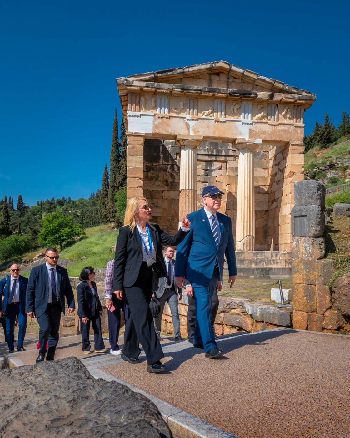 Le prince Albert II a effectué cette visite dans ce lieu historique, dans le cadre du Forum économique de Delphes, qui est consacré aux enjeux maritimes et à l’économie bleue. Le prince Albert a prononcé un discours, dans lequel il a rappelé « combien la mer est au fondement des civilisations, et en particulier de la civilisation grecque, qui a su en faire un espace d’ouverture, d’échanges et de progrès ». Il a souligné que « l’océan demeure aujourd’hui au cœur des grands équilibres mondiaux, qu’il s’agisse du climat, de la biodiversité, de l’alimentation ou encore de l’énergie, tout en alertant sur les pressions croissantes qui pèsent sur ces écosystèmes, notamment en Méditerranée. »