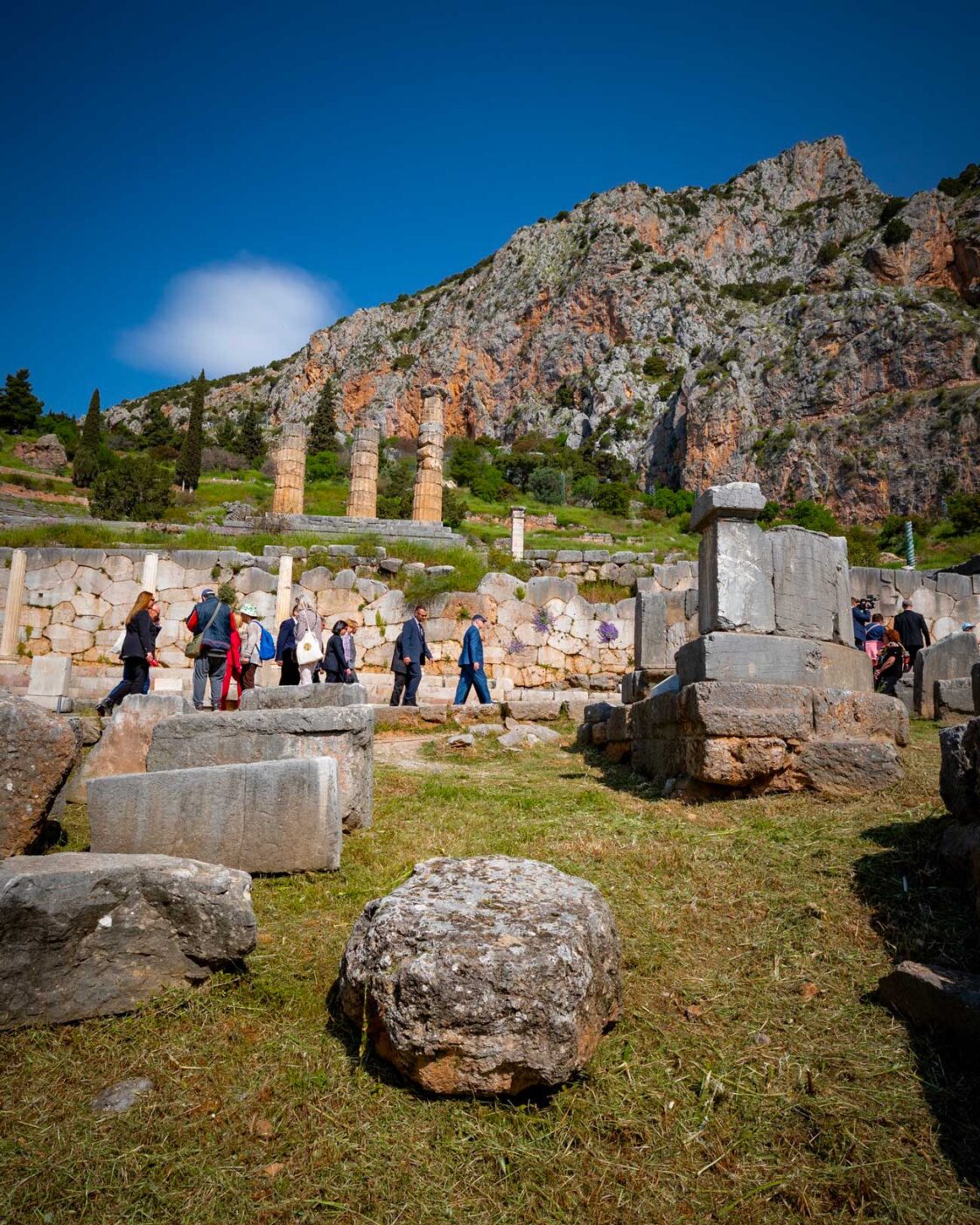 Le 22 avril, au deuxième jour de sa visite officielle en Grèce, le prince Albert II a pris la direction de Delphes. Delphes est un célèbre site panhellénique situé au pied du mont Parnasse. Du 6e au 4e siècle avant Jésus-Christ, ce sanctuaire était un important centre religieux du monde grec. Le site a été découvert lors de fouilles en 1892.