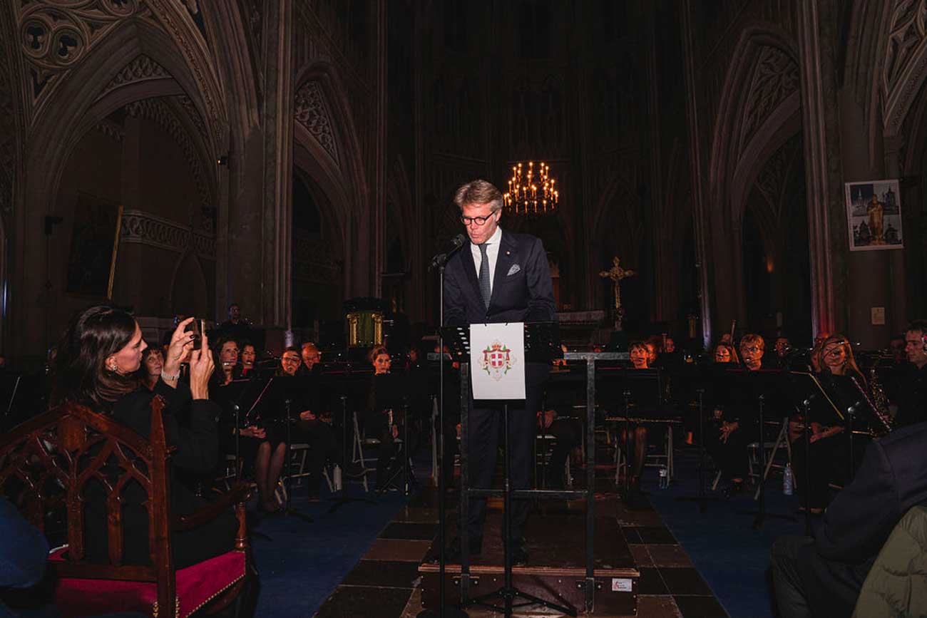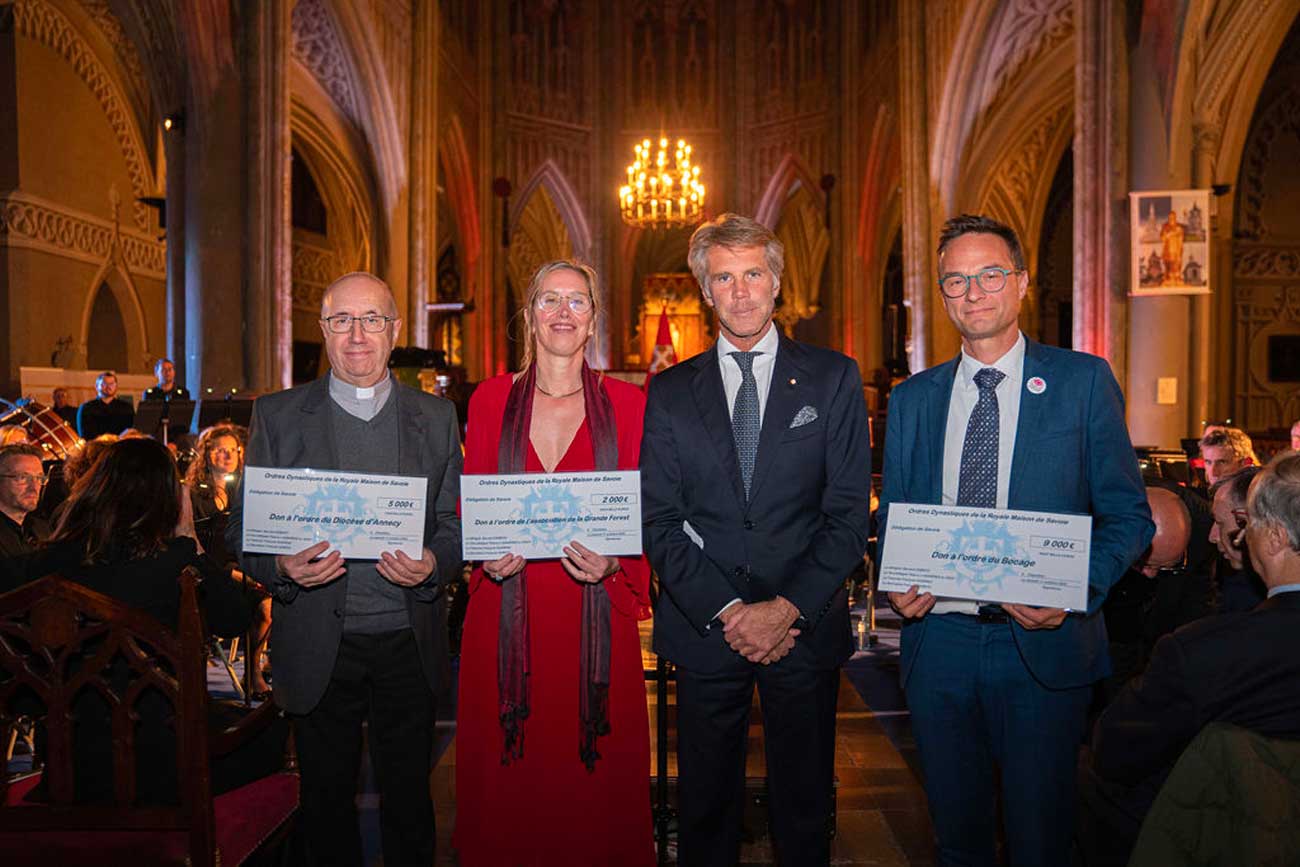L’entracte fut l’occasion de plusieurs prises de paroles. Le baron Thierry d’Asnières de Veigy, vice-délégué de la délégation de Savoie des ordres dynastiques, a présenté l’histoire des ordres de la maison de Savoie et leurs charismes. À son tour, le prince a rappelé l’attachement de la maison de Savoie à Chambéry, et le rôle caritatif de ses ordres à travers le monde. Un don a ensuite été remis à chacun des bénéficiaires du concert : le château de La Grande Forest, les œuvres du diocèse d’Annecy et la Fondation du Bocage.