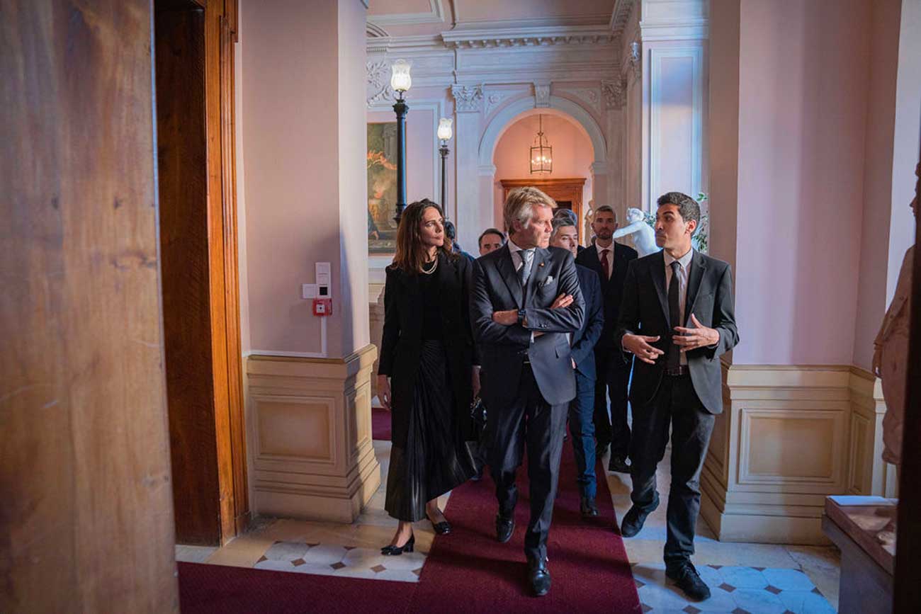 Après la Sainte-Chapelle, le prince a visité les salons d’honneurs situés dans l’aile Napoléon III du château, où il a été reçu par Renaud Beretti, maire d’Aix-les-Bains et vice-président du Conseil départemental de la Savoie. La visite des salons a été conduite par des membres de la Conservation départementale du patrimoine de Savoie sous la direction de Jérôme Durand. C’est dans l’un de ces salons que fut signé le procès-verbal de cession de la Savoie à la France le 14 juin 1860. Les murs de ces salons sont ornés de tableaux représentant des membres de la maison de Savoie, symbole de la présence pluriséculaire de cette famille en ces lieux.