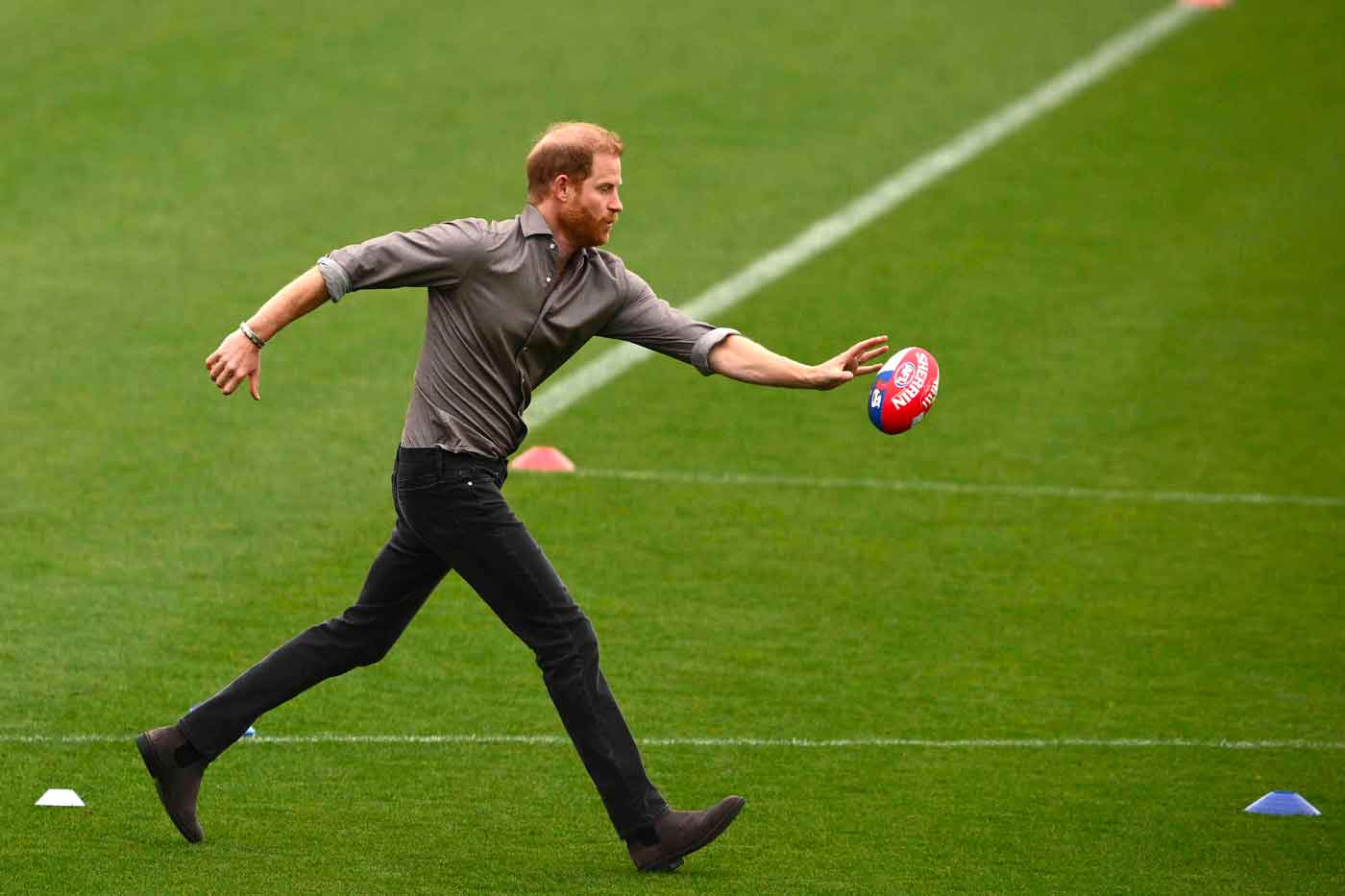 Le duc de Sussex, 41 ans, s’est rendu au Whitten Oval, le stade de football australien où s’entraînent les Western Bulldogs. Ce stade est situé à Footscray, dans la banlieue de Melbourne. Lors de cette visite, le prince Harry a prouvé une fois de plus son amour pour le sport et a reçu des explications sur les règles de ce sport endémique. Ce sport est proche du rugby mais il se joue sur un terrain de forme ovale et les distances à parcourir sont plus grandes qu’au rugby, ce qui nécessite de courir beaucoup plus avec la balle au pied.