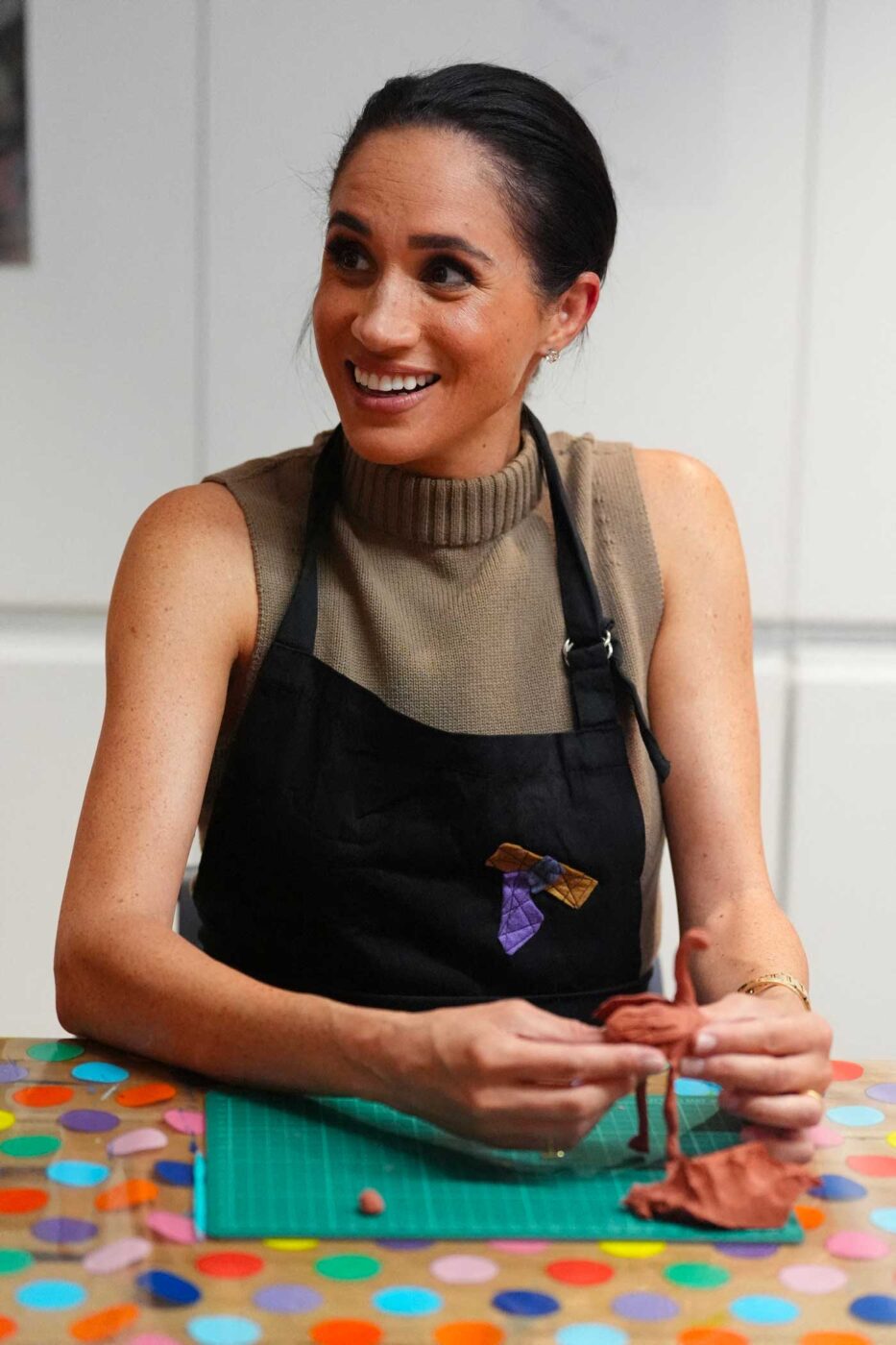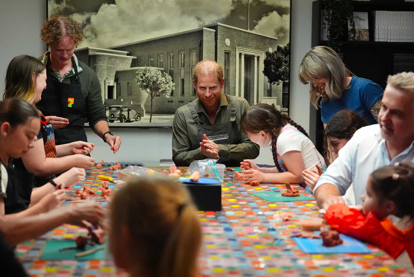 Le couple a visité le musée, accompagné de Tanya Johnston, la fondatrice de l’ANVAM. Meghan et Harry ont visité l’exposition du moment qui présentait des œuvres réalisées par des anciens combattants. Le duc et la duchesse de Sussex ont ensuite enfilé des tabliers et participé à un atelier de poterie proposé aux enfants d’anciens combattants. Meghan a créé une autruche en argile, expliquant qu’il y a une ferme à autruches près de chez eux en Californie et qu’elle connaît donc bien cet animal australien. Le prince Harry a lui aussi tenté de réaliser un oiseau d’Australie.