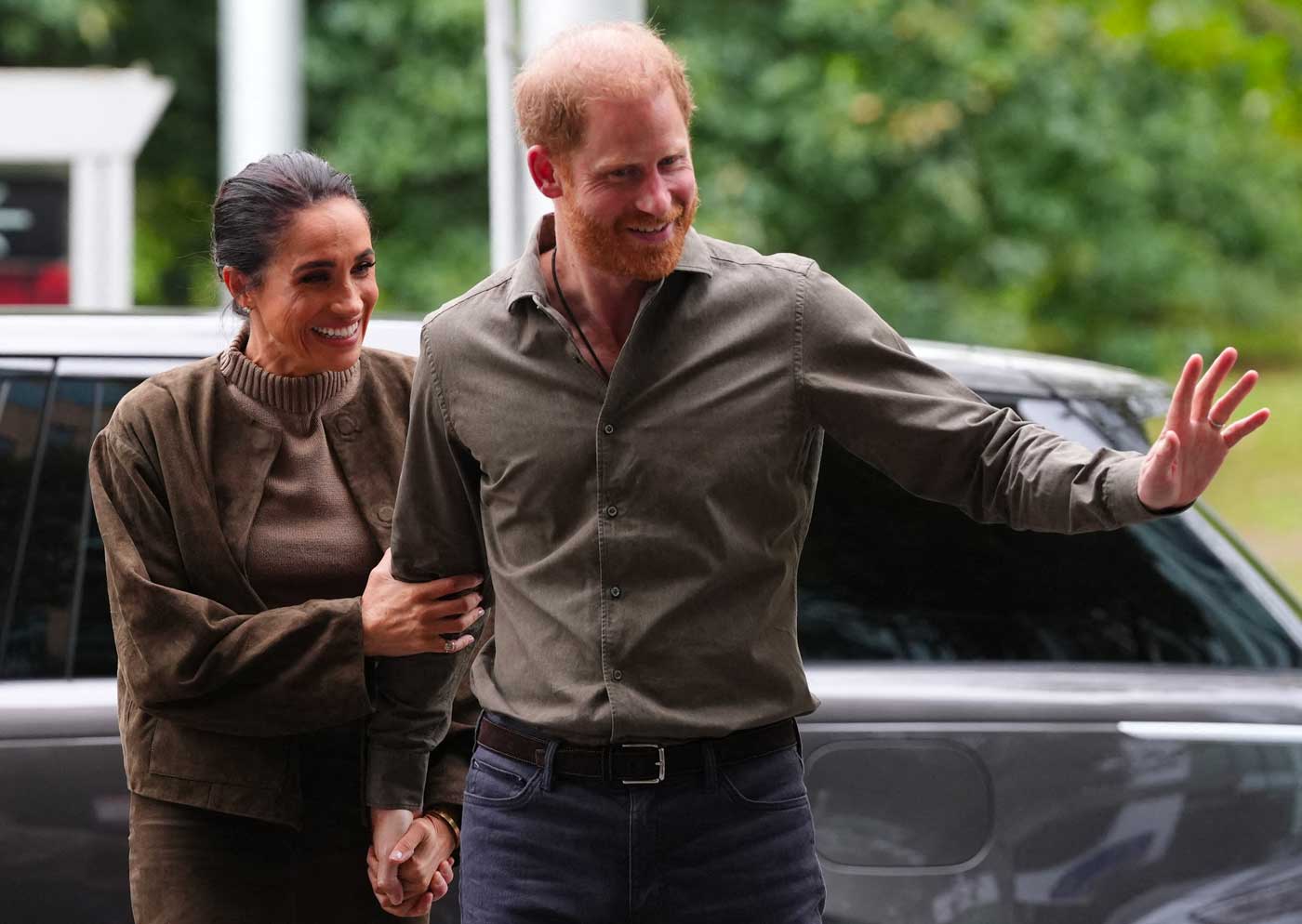 Musée national australien d’art des vétérans (ANVAM) est institution culturelle nationale et une organisation caritative, reconnue d’utilité publique en Australie. Elle est dirigée par des vétérans et vise à améliorer et renforcer le bien-être des anciens combattants grâce à des programmes, des projets et des collaborations artistiques adaptés. Pour cette troisième visite, Harry et Meghan s’étaient changés et portaient des tenues dans des nuances de verts et de bruns, rappelant la couleur kaki des uniformes militaires. Une fois de plus, la duchesse de Sussex mettait la mode australienne à l’honneur en portait un pull P. Johnson, et un blouson St Agni, deux marques australiennes.