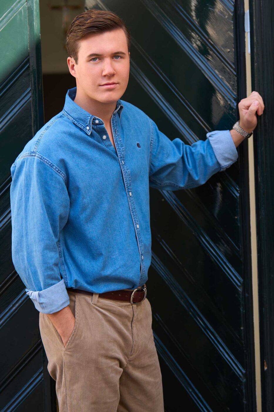 Le prince héritier Christian a pris la pose en costume, offrant un nouveau portrait formel. Un cliché pris durant la préparation de ce portrait montre le jeune homme en train de nouer sa cravate. Trois photos ont été prises avec une chemise bleue et un pantalon beige en velours côtelé, tandis que les deux dernières photos montrent le prince assis et serein, après avoir enfilé un gilet marron. Les photos ont été prises récemment au complexe royal d’Amalienborg, à Copenhague.
