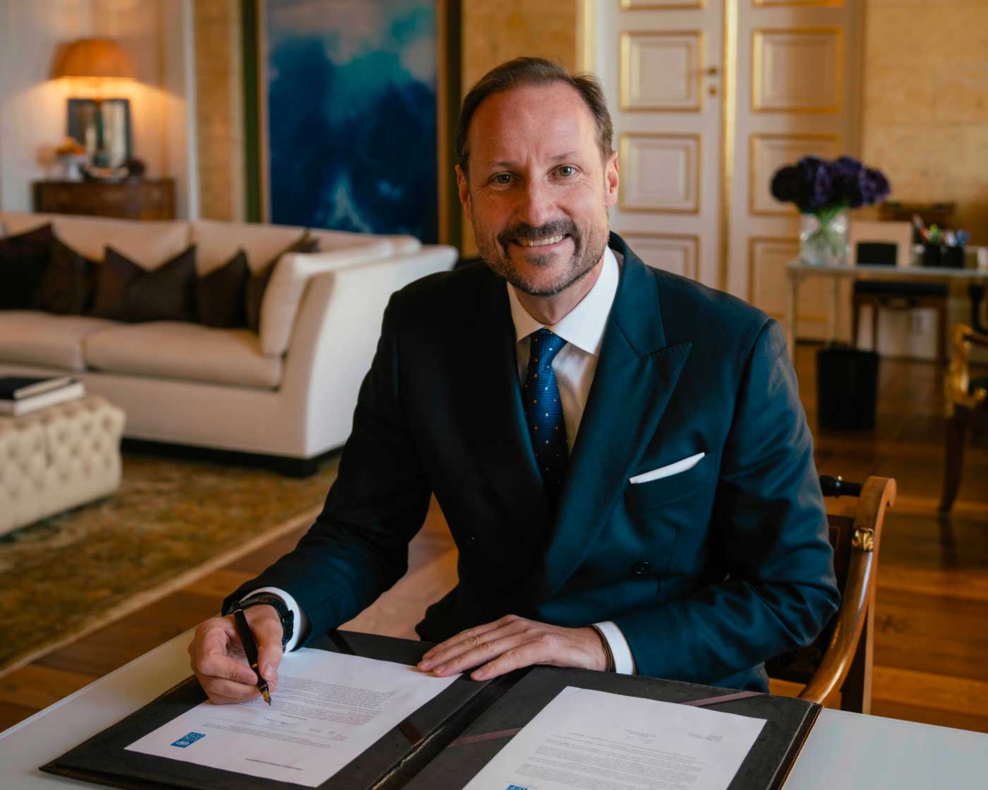 Le 20 novembre 2025, le prince héritier Haakon a signé le nouvel accord qui prolonge son rôle d’ambassadeur pour un mandat supplémentaire, jusqu’en 2027. Ce 18 décembre, un mois après avoir rempilé pour une supplémentaire, le prince héritier Haakon a reçu au palais royal d’Oslo Alexander De Croo. L’ancien premier ministre belge a été nommé à la tête de la plus importante agence de développement des Nations Unies, qui œuvre pour la réduction de la pauvreté et le développement durable dans environ 170 pays.