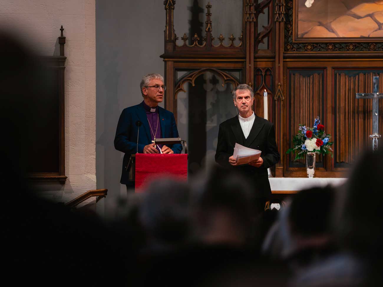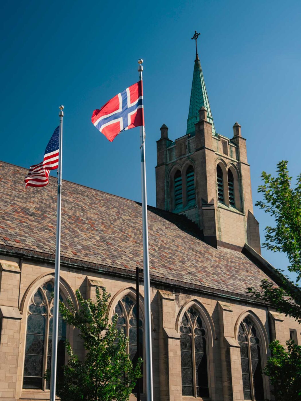 À côté de la Norway House se trouve la Mindekirken, l’église du souvenir. Fondée en 1922, cette église est l’une des rares paroisses où les offices sont célébrés en norvégien. Elle constitue également un pilier dans la vie de la communauté d’origine norvégienne à Minneapolis. L’évêque Olav Fykse Tveit, considéré comme le primat de l’Église de Norvège en tant que président de conférence épiscopale de Norvège, était lui aussi du voyage pour concélébrer l’office.
