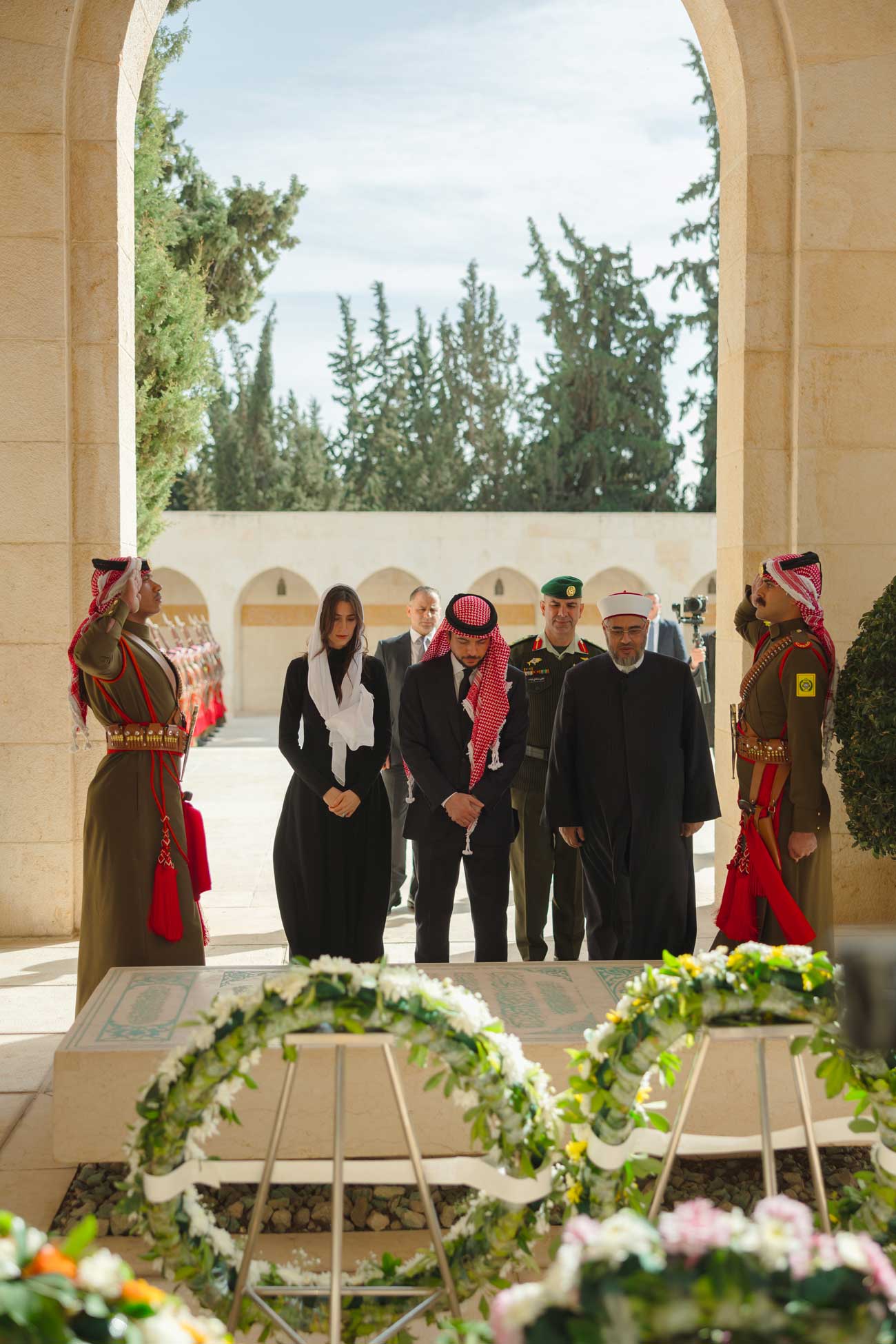 Le prince héritier Hussein s’est rendu devant la tombe de son grand-père avec son épouse, la princesse Rajwa. Depuis son mariage en juin 2023, la princesse Rajwa reste un membre discret de la famille royale. Elle apparaît dorénavant ponctuellement à côté de son époux lors de certains événements et assure quelques visites mais ses apparitions semblent aléatoires.