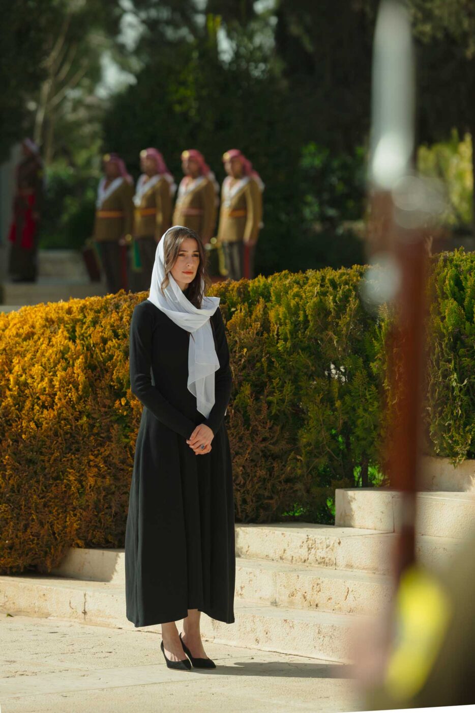 La princesse Rajwa apparaît à côté de son époux pour rendre hommage au roi Hussein